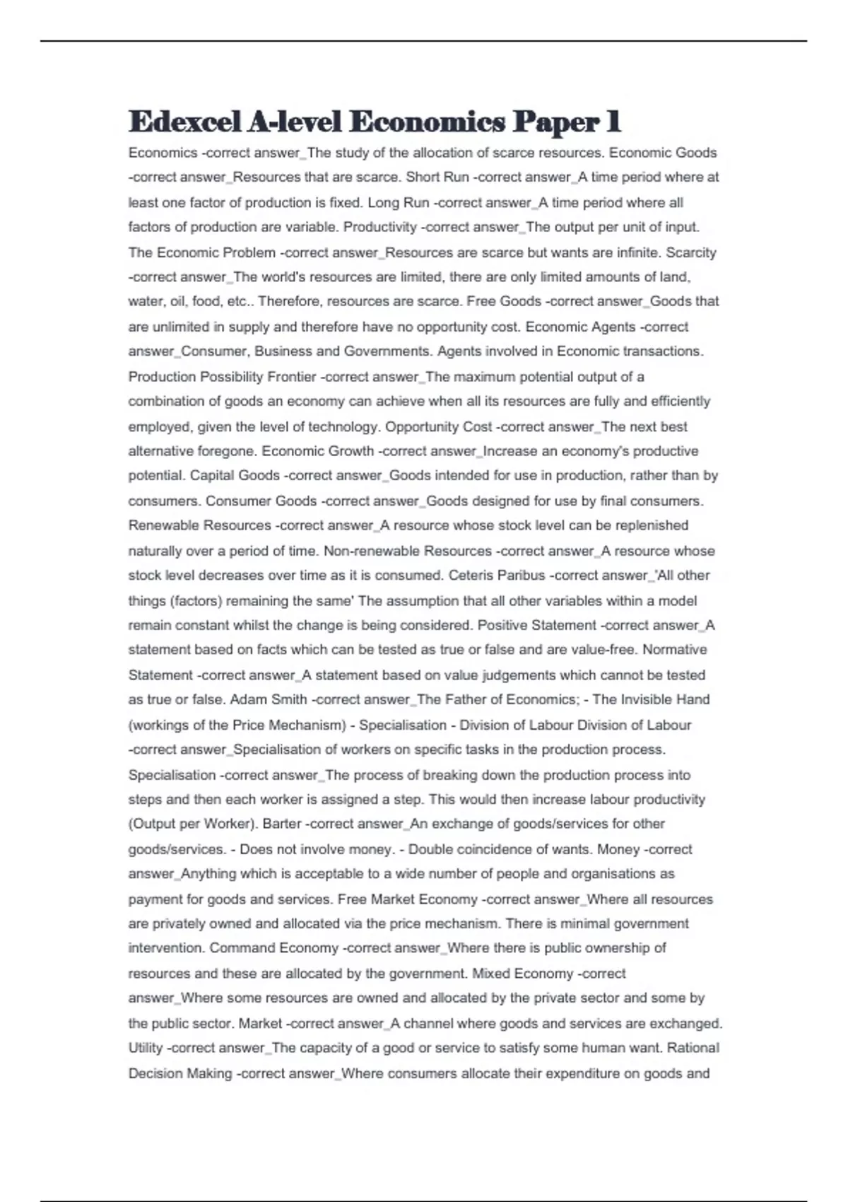 The Economic Problem -correct answer_Resources are scarce but wants are infinite. Scarcity