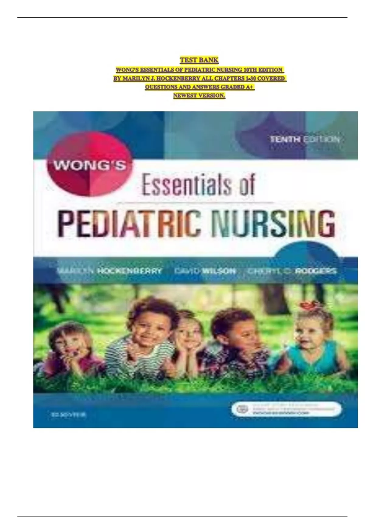 TEST BANK WONG'S ESSENTIALS OF PEDIATRIC NURSING 10TH EDITION BY MARILYN J. HOCKENBERRY ALL CHAPTERS 1-30 COVERED QUESTIONS AND ANSWERS GRADED A+ NEWEST VERSION.