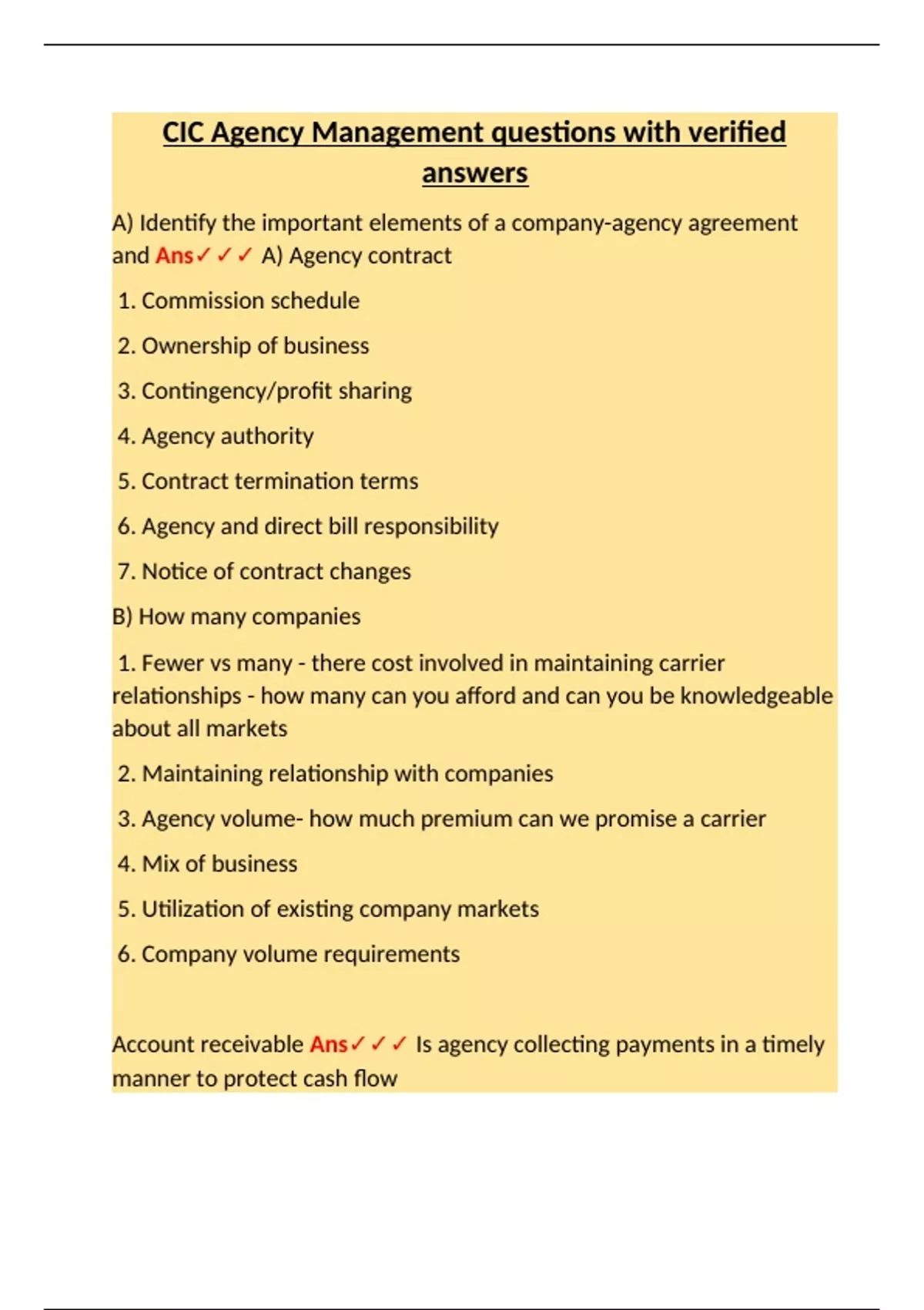 Account receivable Ans✓✓✓ Is agency collecting payments in a timely