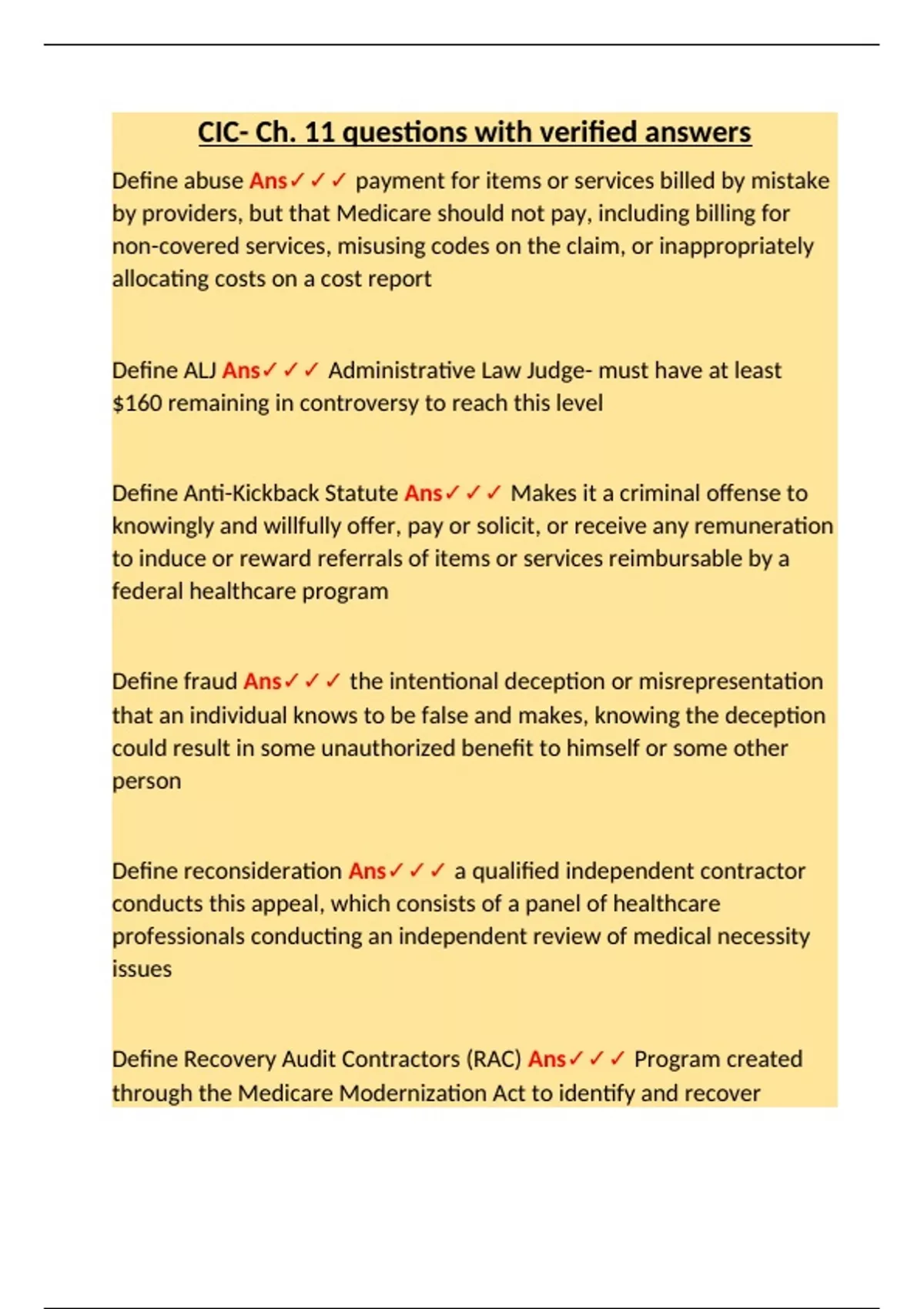 Define Recovery Audit Contractors (RAC) Ans✓✓✓ Program created