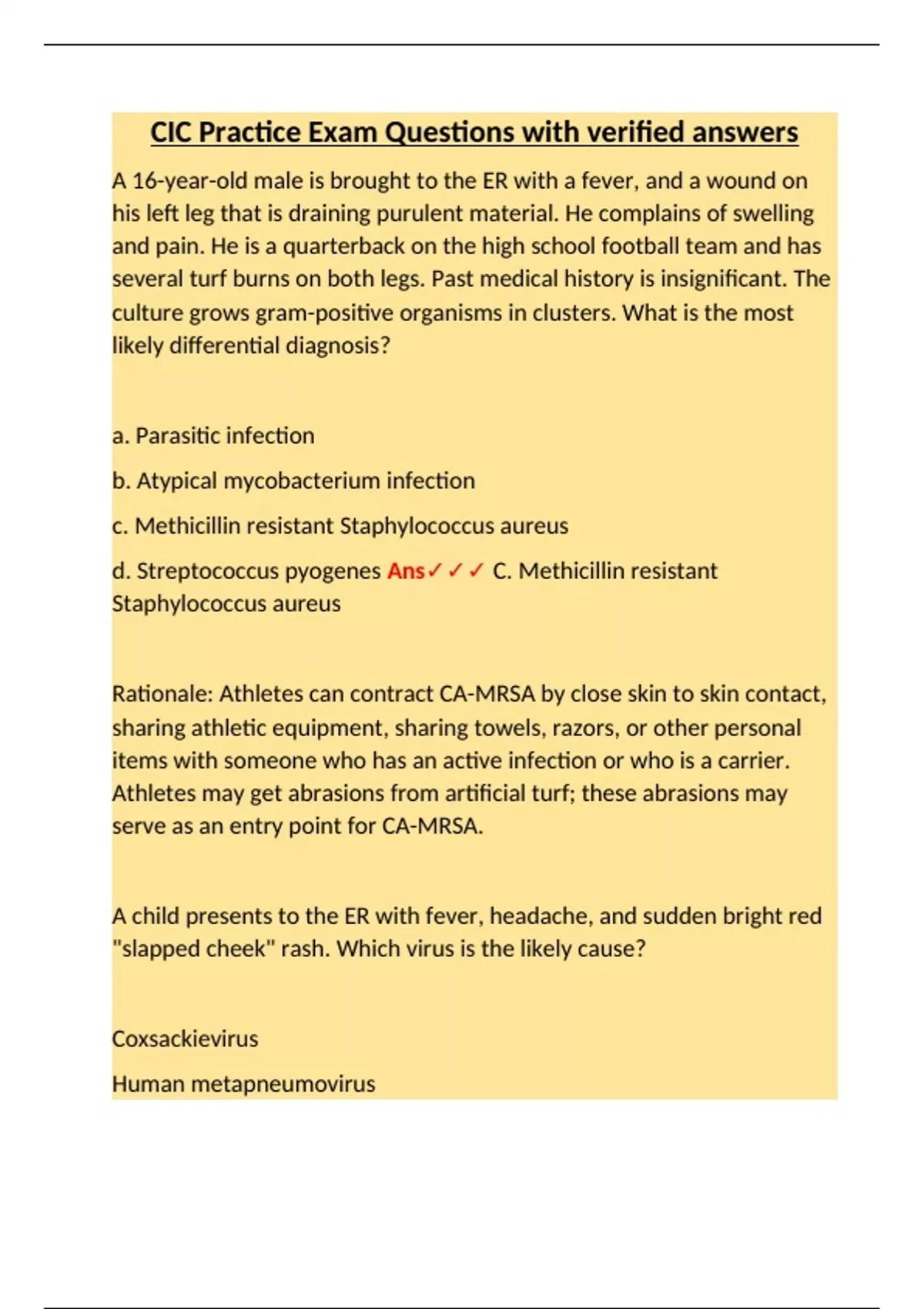 A 16-year-old male is brought to the ER with a fever, and a wound on