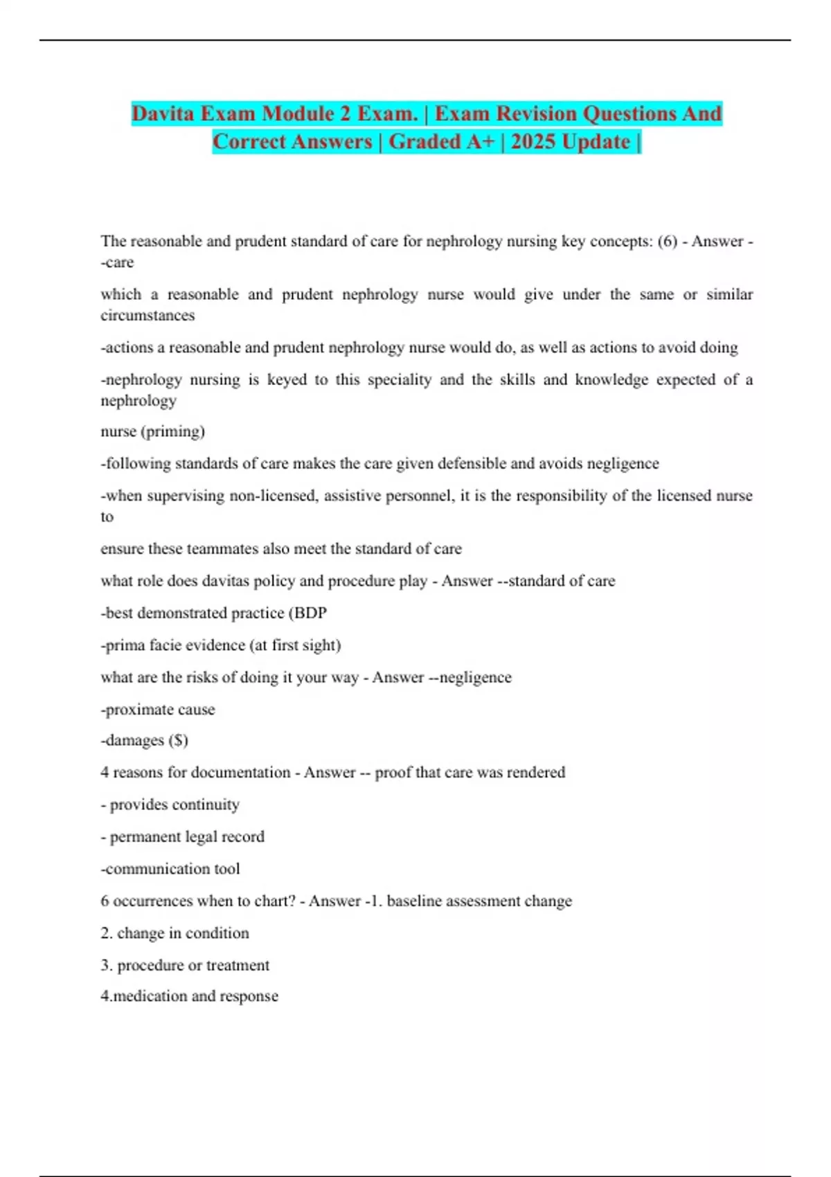 Davita Exam Module 2 Exam. | Exam Revision Questions And Correct Answers | Graded A+ | 2025 Update |