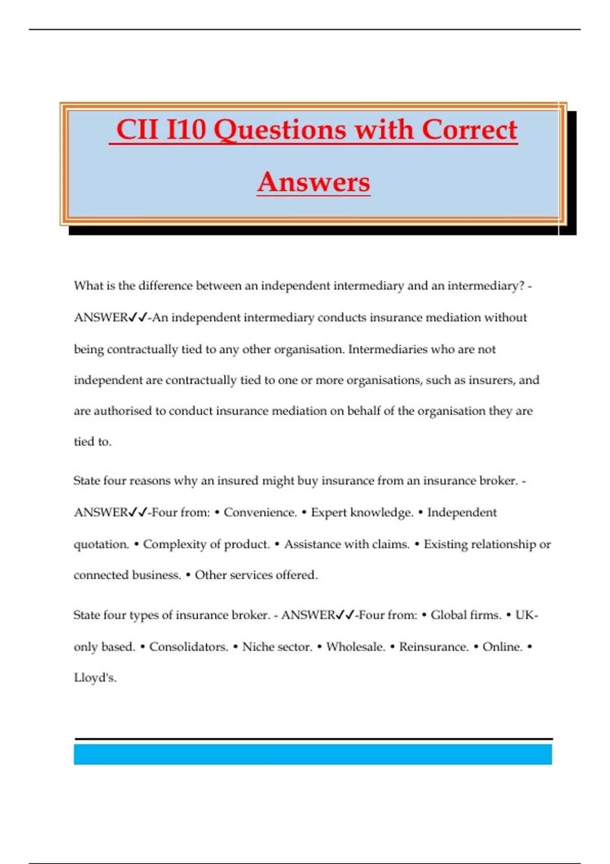 ANSWER✔✔-An independent intermediary conducts insurance mediation without