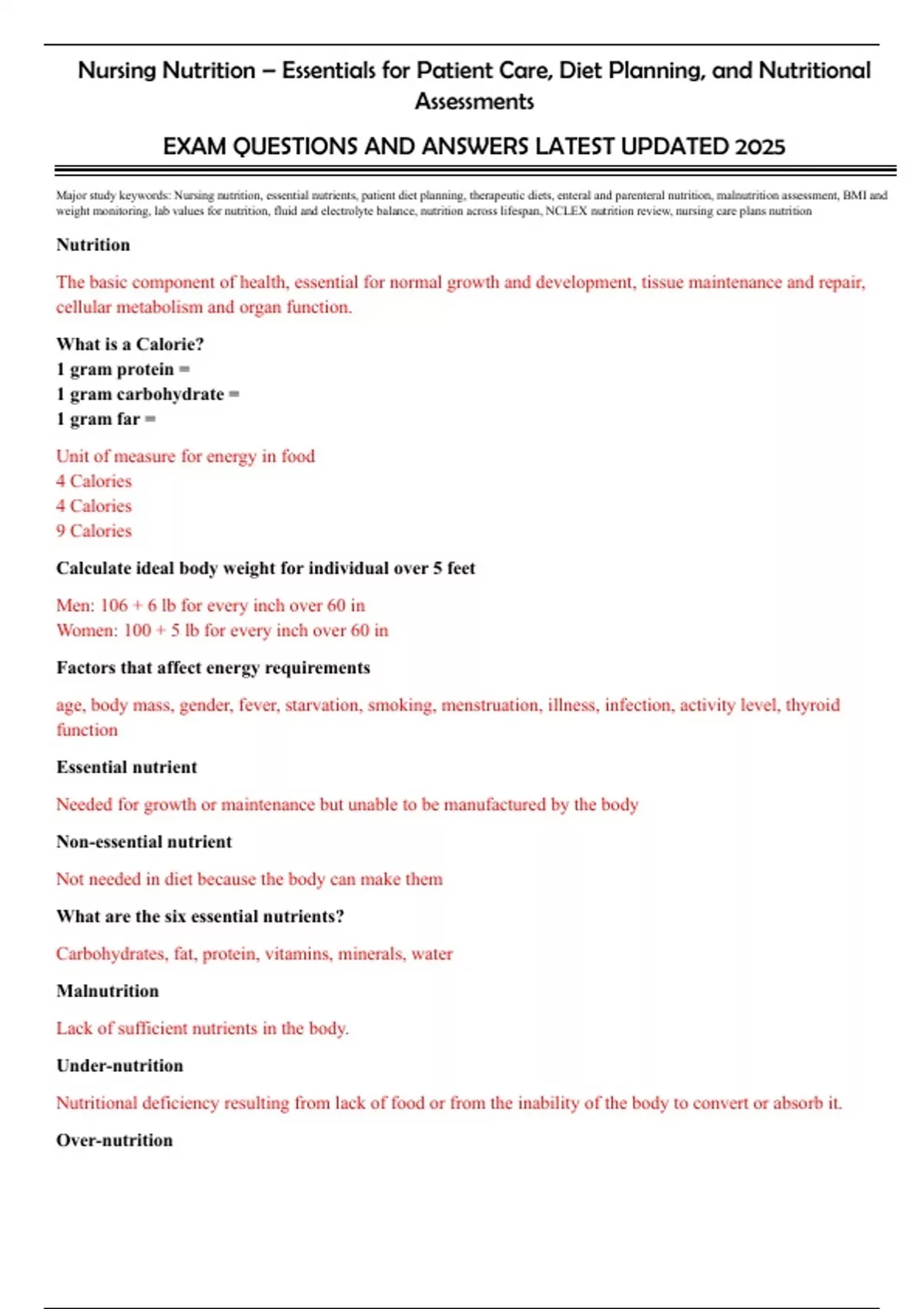 Major study keywords: Nursing nutrition, essential nutrients, patient diet planning, therapeutic diets, enteral and parenteral nutrition, malnutrition assessment, BMI and