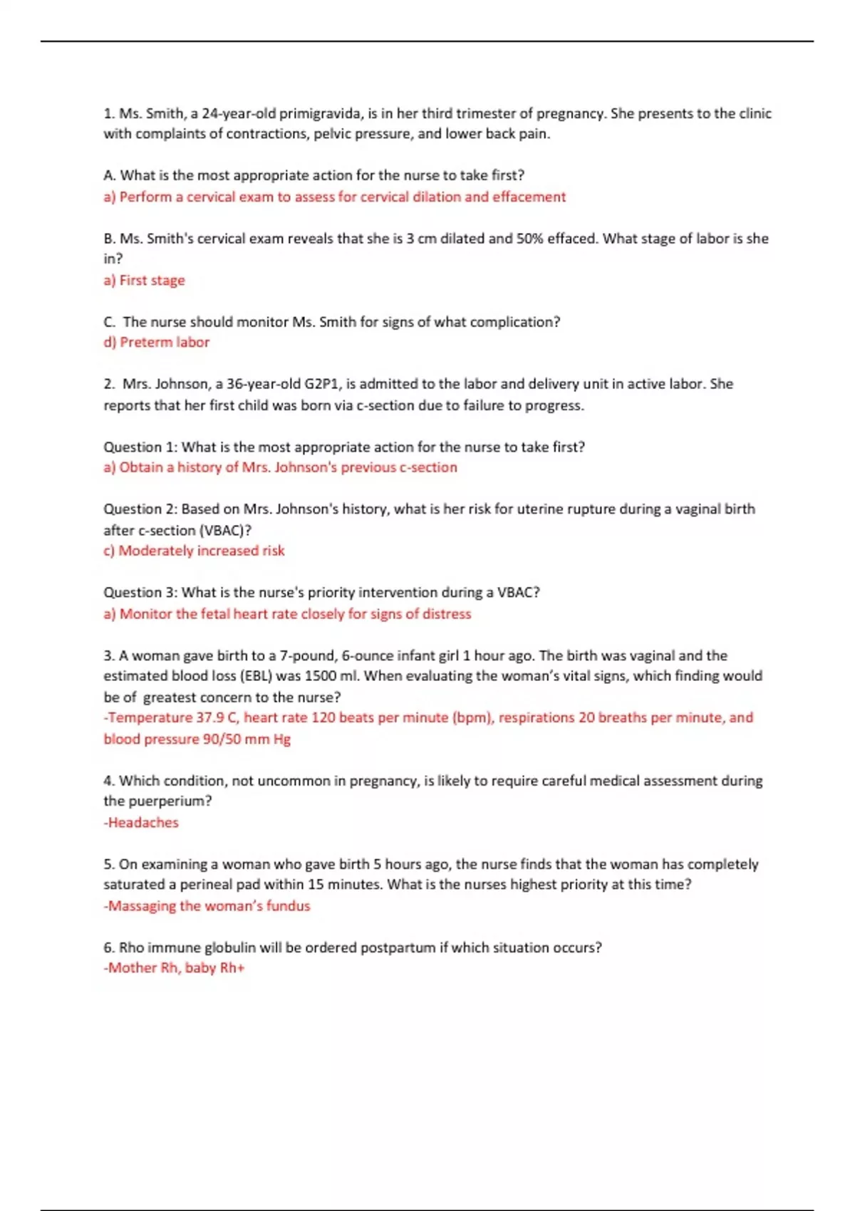 Question 3: What is the nurse's priority intervention during a VBAC?
