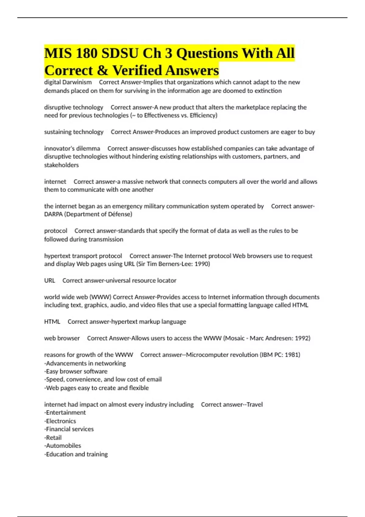 world wide web (WWW) Correct Answer-Provides access to Internet information through documents