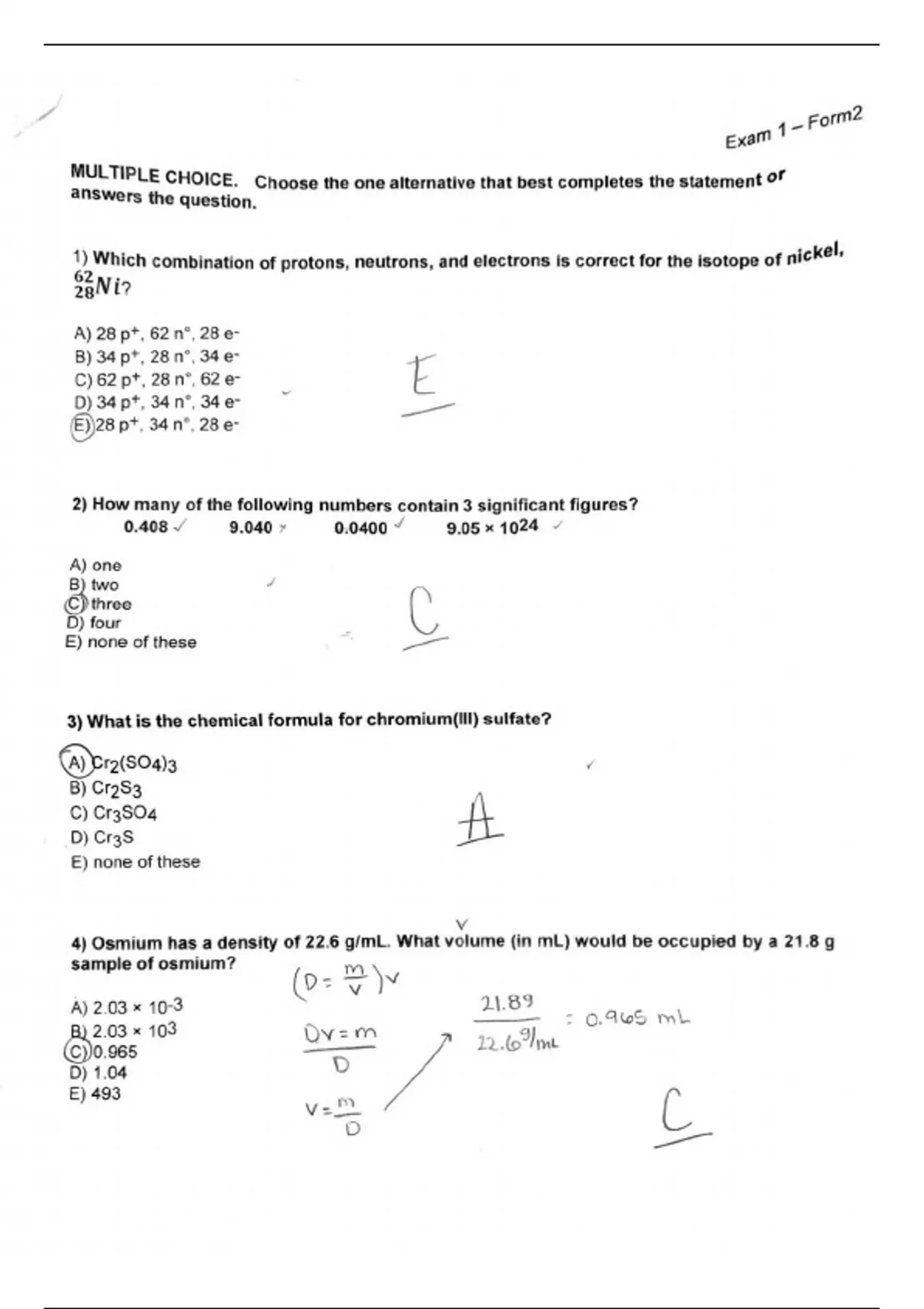 CHEM 1201 Exam 1 Form 2 | Questions and Answers | 2025 Update | 100% Correct.