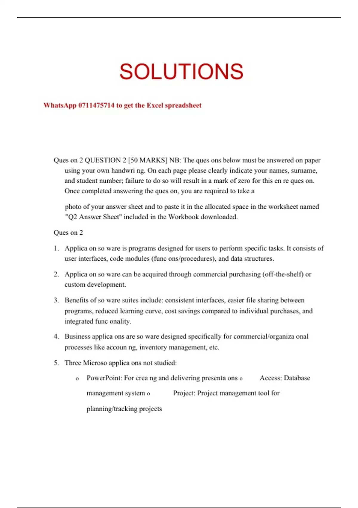 Ques on 2 QUESTION 2 [50 MARKS] NB: The ques ons below must be answered on paper