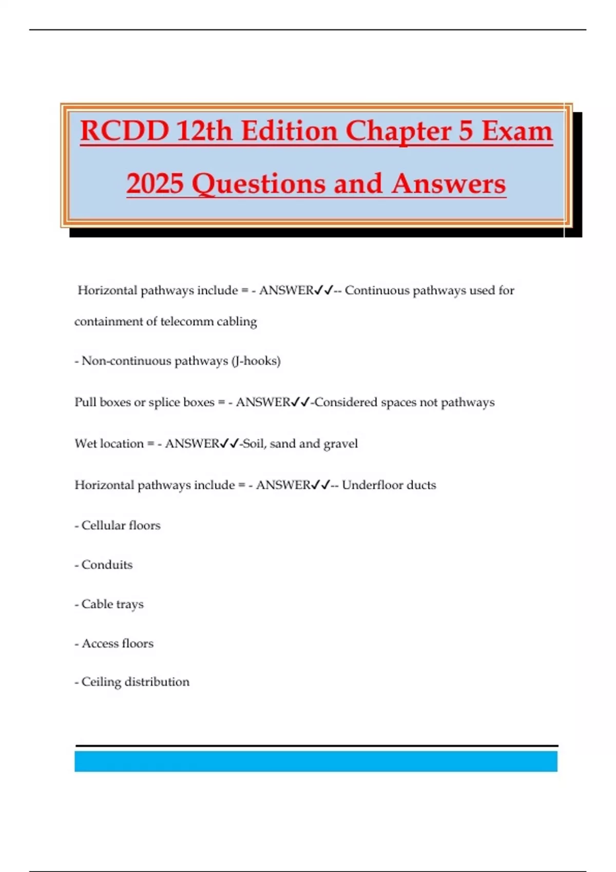 RCDD 12th Edition Chapter 5 Exam 2025 Questions and Answers