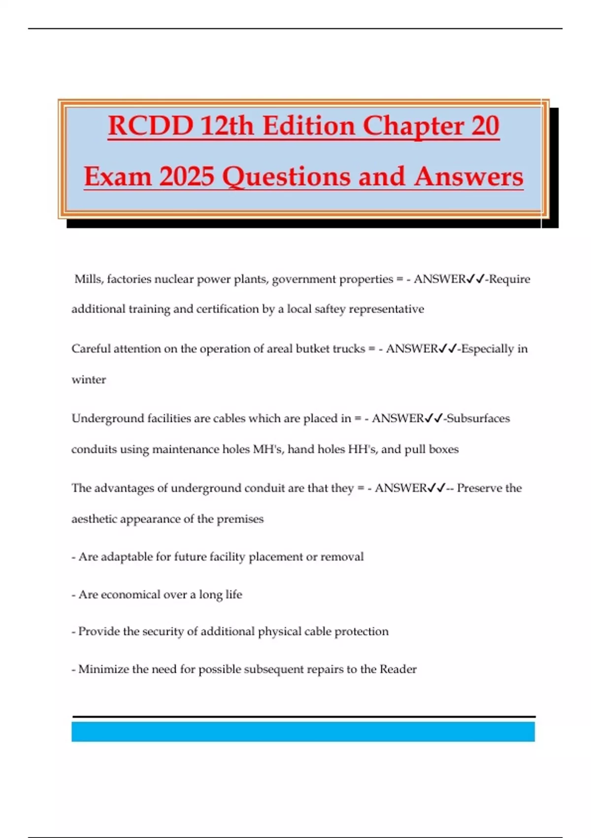 RCDD 12th Edition Chapter 20 Exam 2025 Questions and Answers