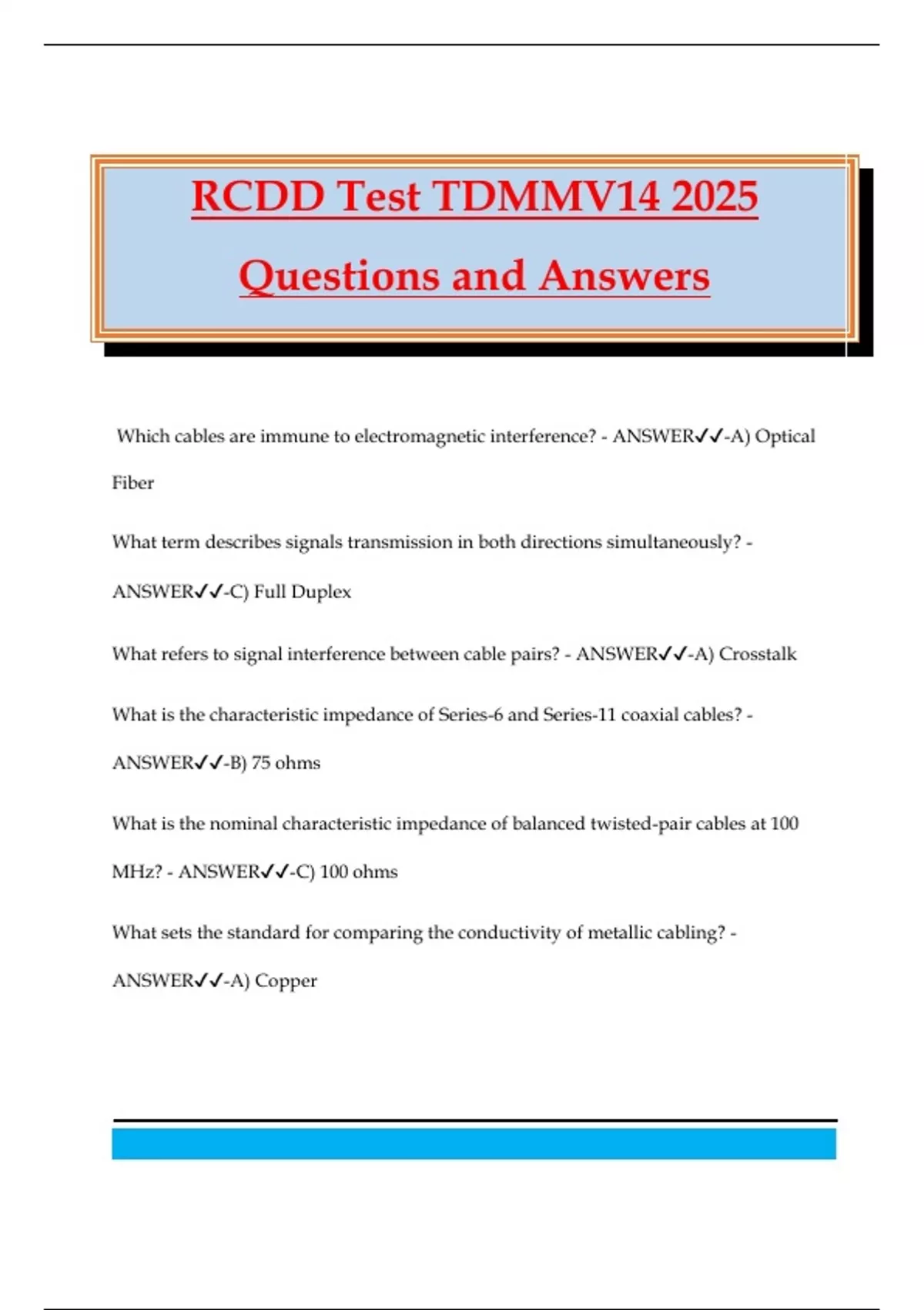 Which cables are immune to electromagnetic interference? - ANSWER✔✔-A) Optical