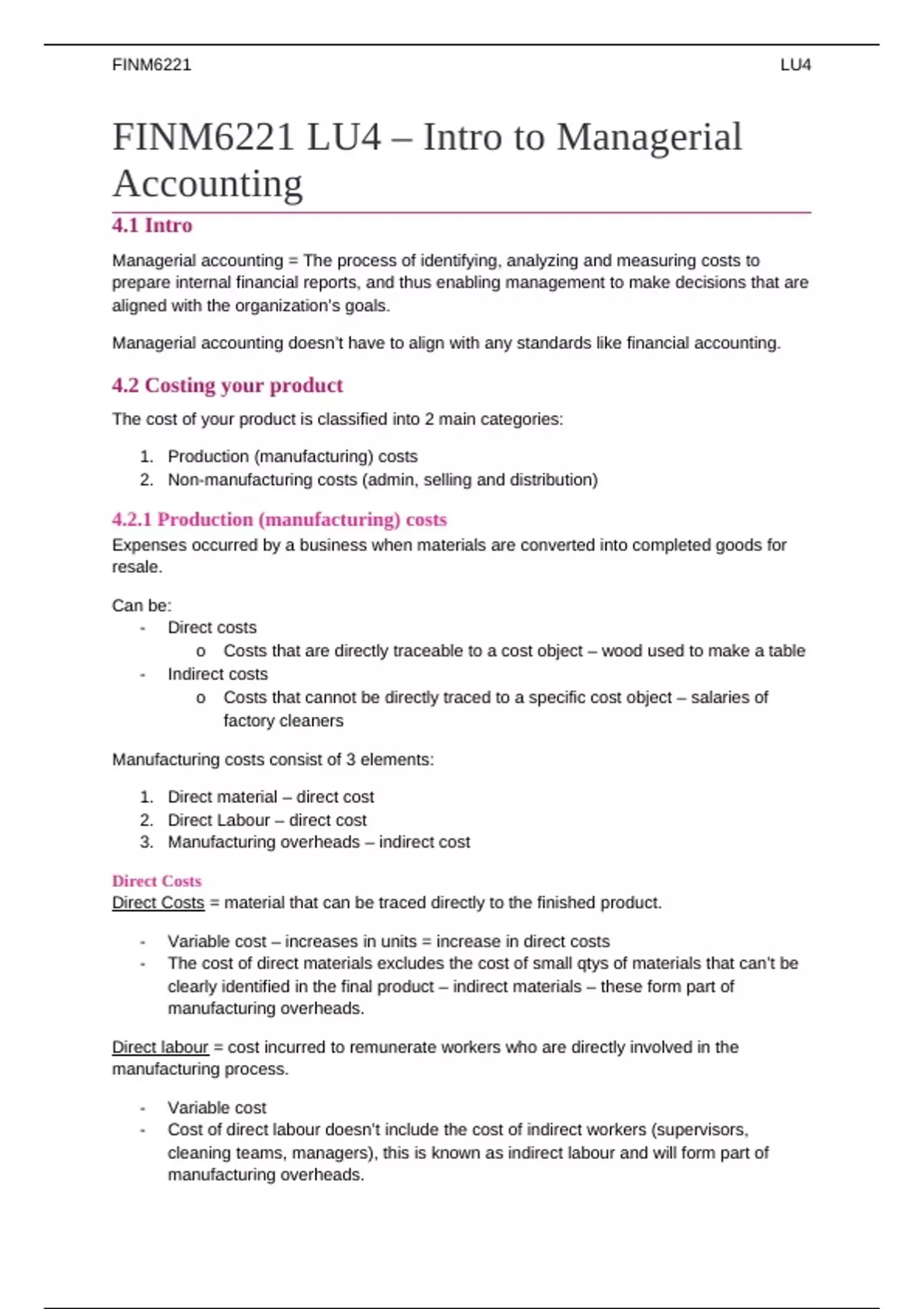 FINM6221 LU4 – Intro to Managerial