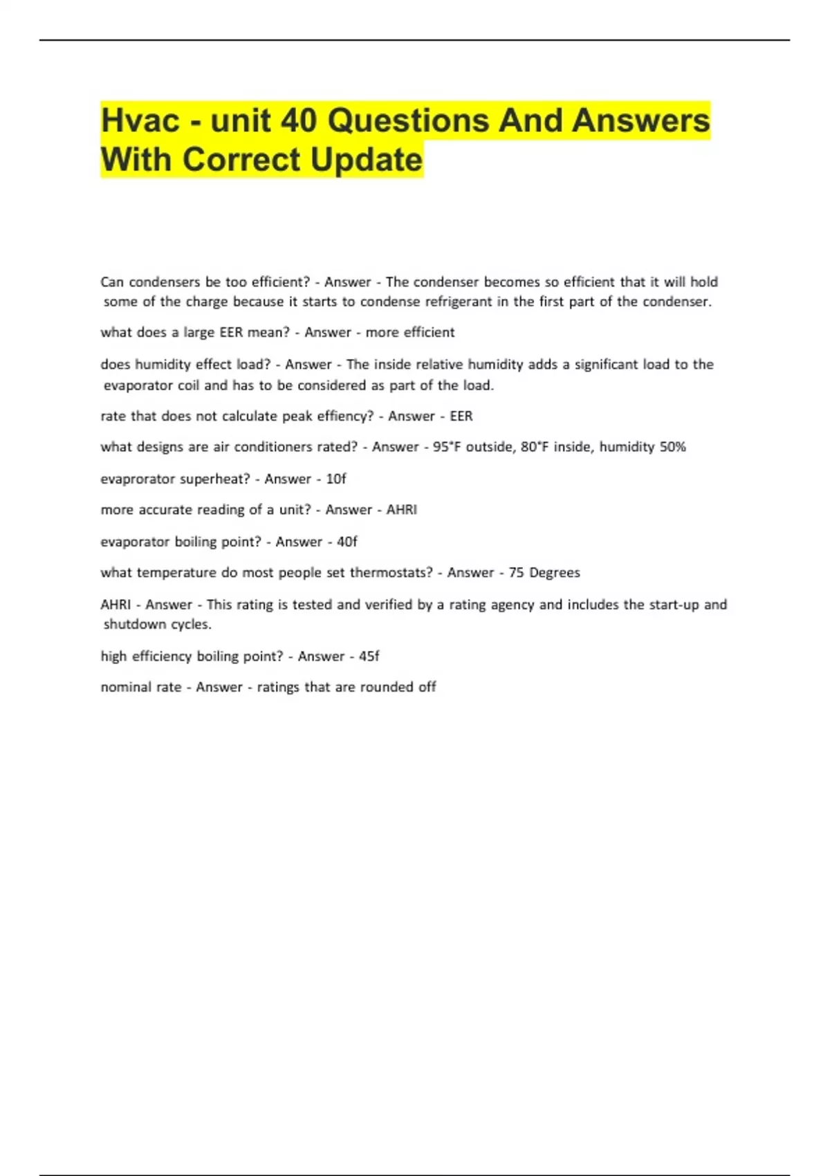 Hvac.Questions And Answers With Correct UpdateHvac.Questions And Answers With Correct UpdateHvac.Questions And Answers With Correct UpdateHvac.Questions And Answers With Correct UpdateHvac.Questions And Answers With Correct Update