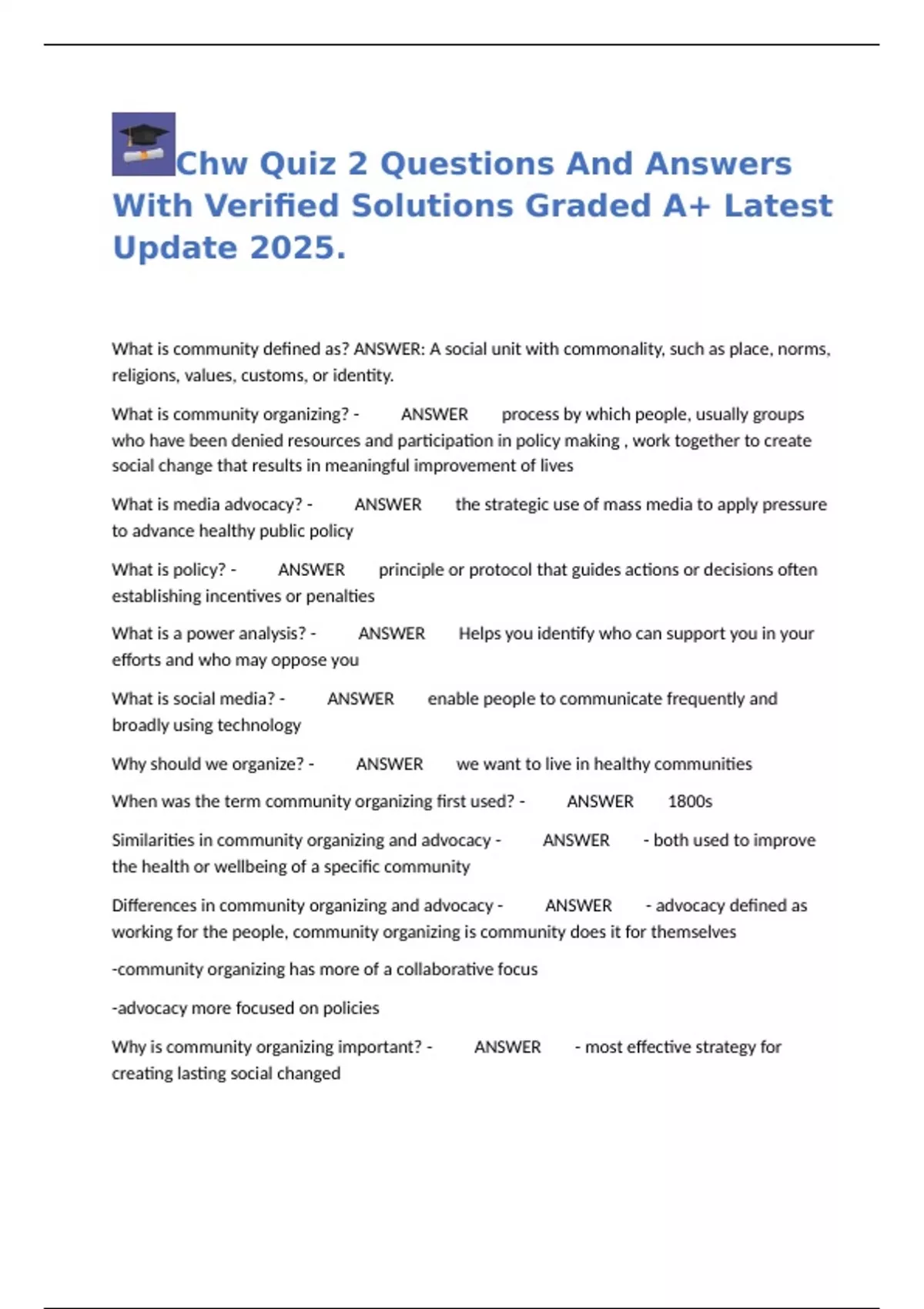 Differences in community organizing and advocacy - ANSWER - advocacy defined as