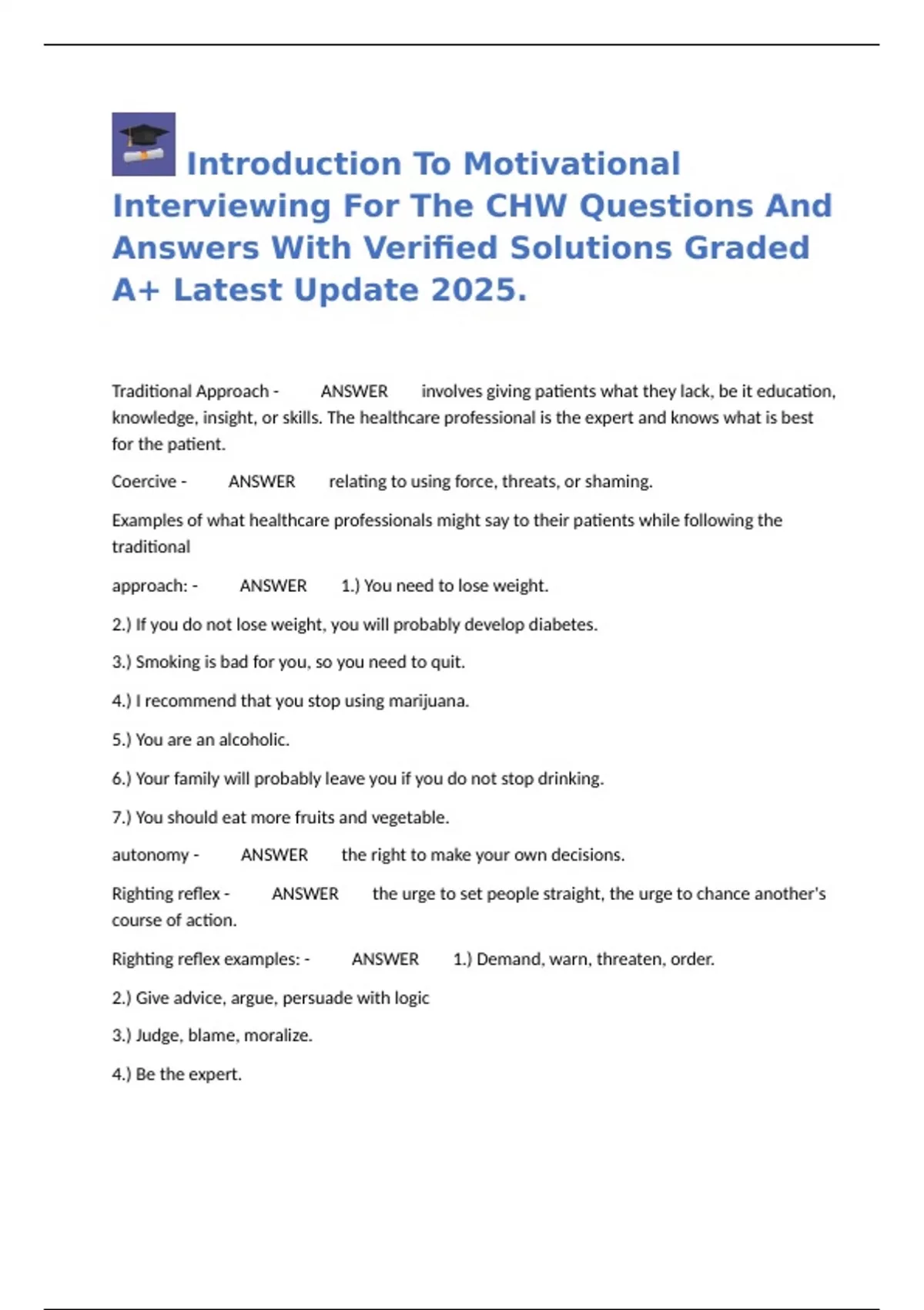 Guiding Style - ANSWER involves the CHW using motivational interviewing strategies