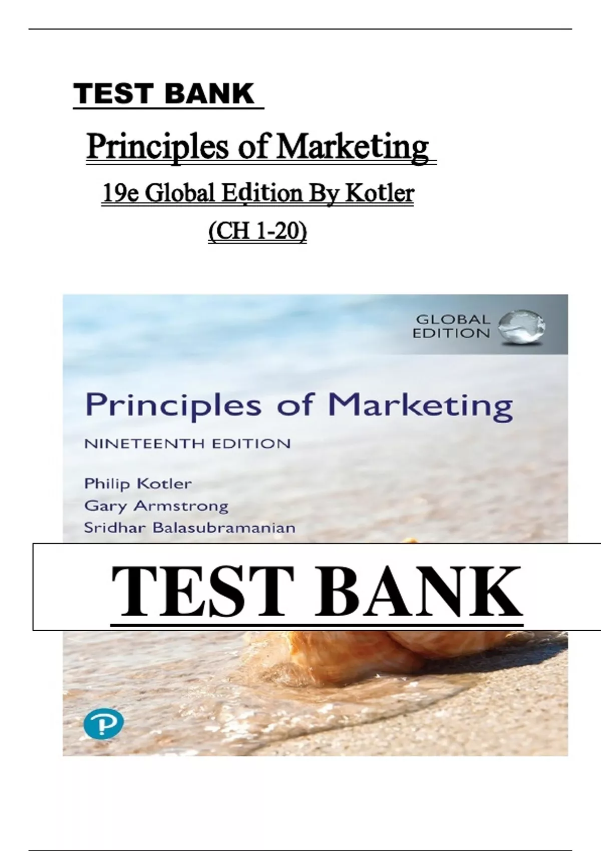 Principles of Marketing – Kotler (19th Global Edition) – Complete Test Bank with Chapter-Based Questions and Answers This test bank covers all 20 chapters of Principles of Marketing (19th Global Edition) by Philip Kotler and Gary Armstrong. It includes hundreds of multiple-choice and application-based questions with accurate answers, covering core marketing topics like consumer behavior, market segmentation, value creation, branding, pricing, digital marketing, and global strategy. Ideal for business and marketing students preparing for exams or classroom assessments. marketing principles, consumer behavior, marketing strategy, market segmentation, branding, pricing strategies, digital marketing, customer value, global marketing, product life cycle, advertising, public relations, marketing channels, retailing, sustainability in marketing, exam prep, Kotler test bank