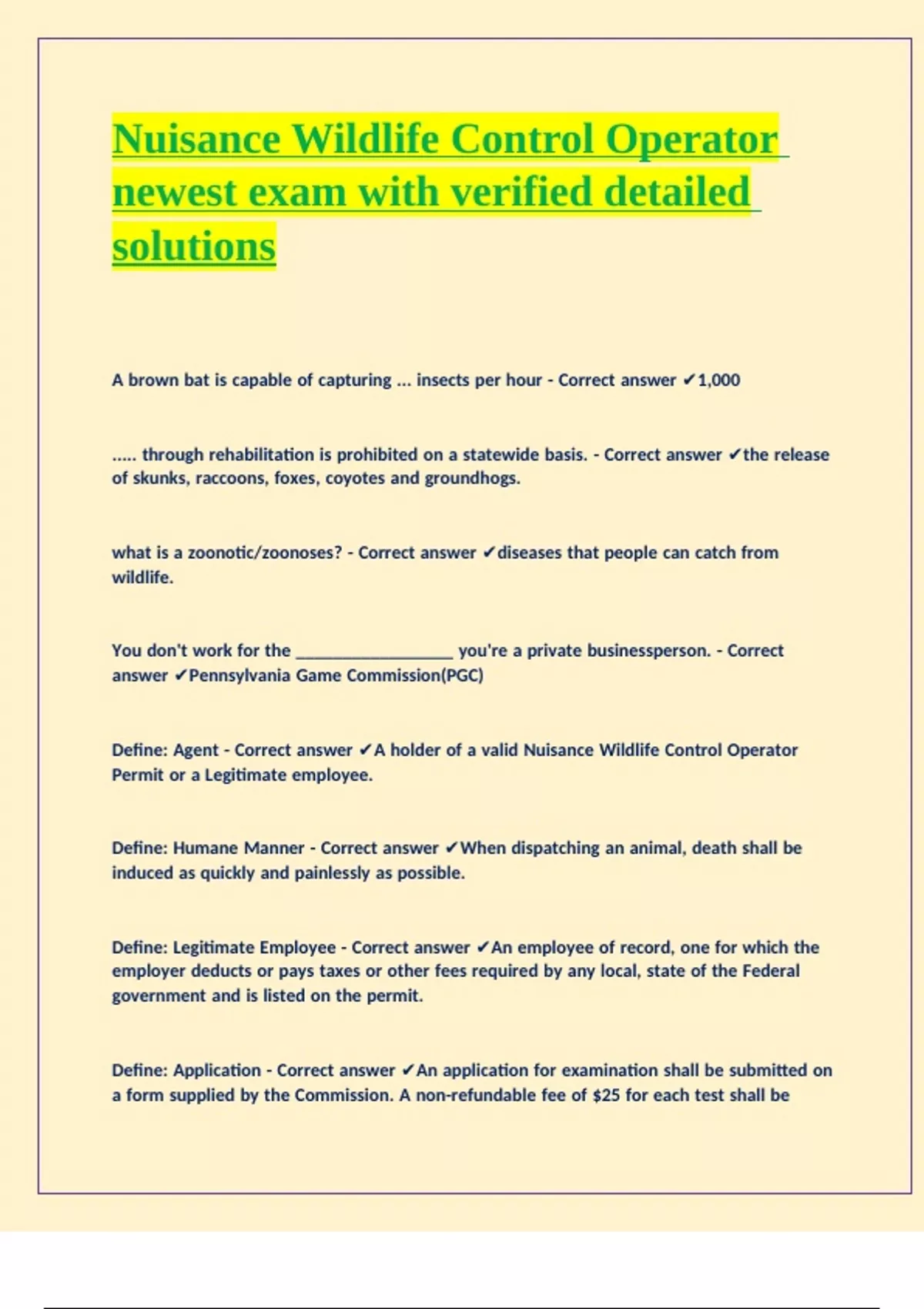 Nuisance Wildlife Control Operator newest exam with verified detailed solutions