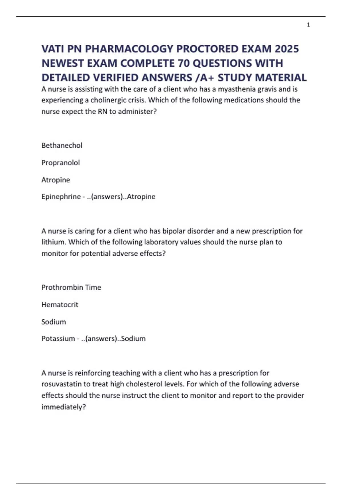 VATI PN PHARMACOLOGY PROCTORED EXAM 2025