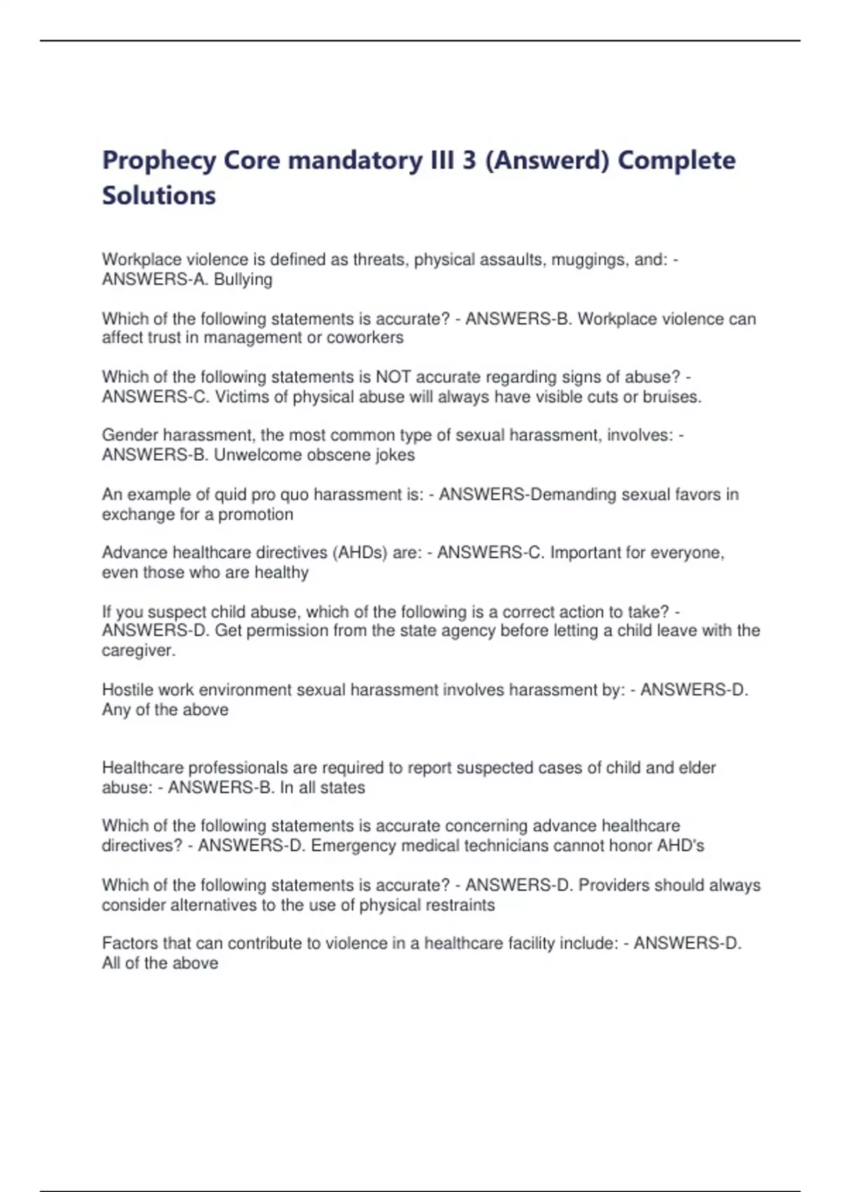 ANSWERS-C. Victims of physical abuse will always have visible cuts or bruises.