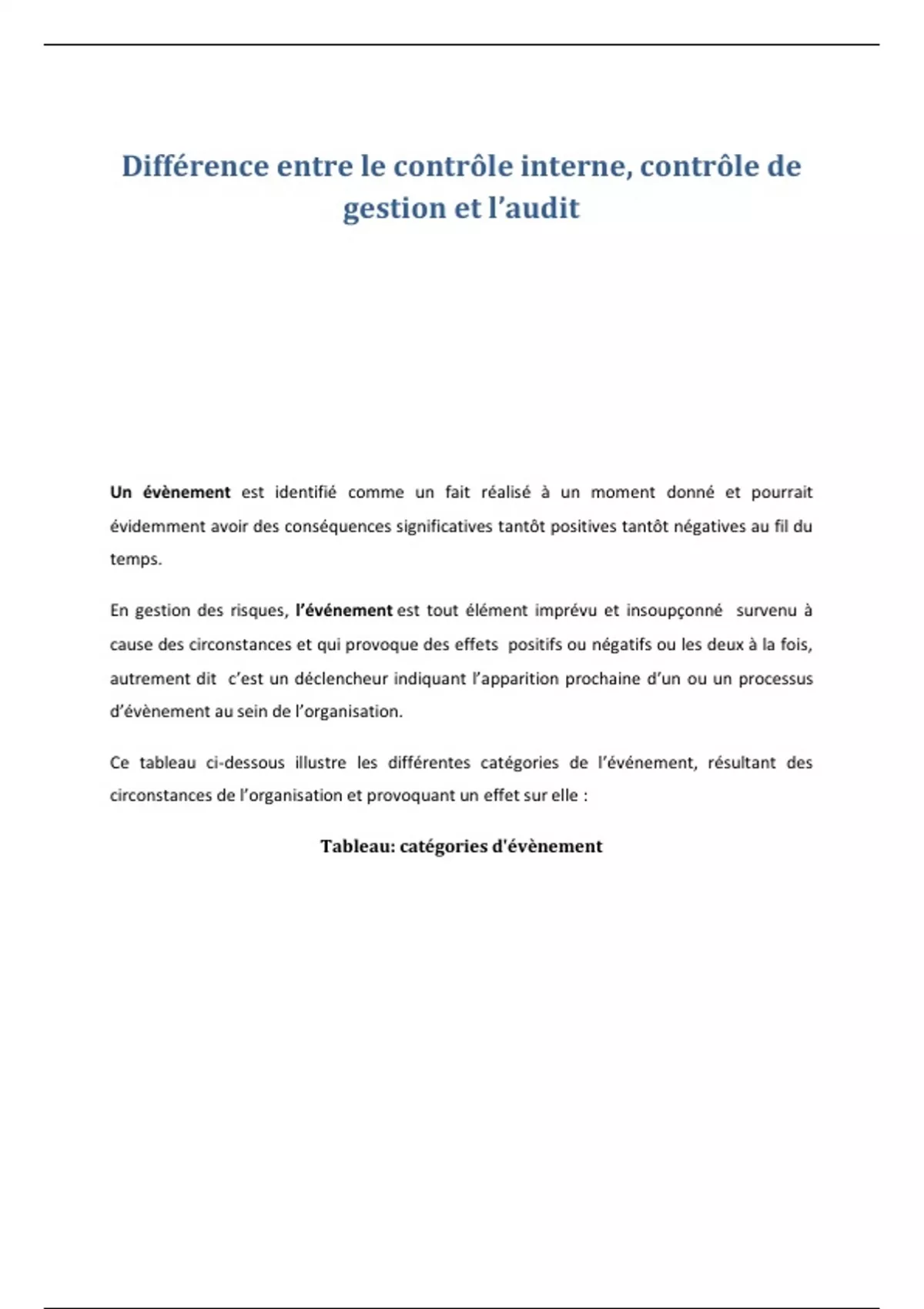 ce présent document vous apporte une comparaison claire entre les ces trois notions nécessaires pour auditer une organisation, tout en basant sur des référentiels solides. il est Idéal pour : Étudiants en comptabilité, finance, audit ou gestion Professionnels en reconversion ou souhaitant approfondir leurs compétences Préparation aux examens, aux mémoires ou aux certifications (DCG, DSCG, MBA…)
