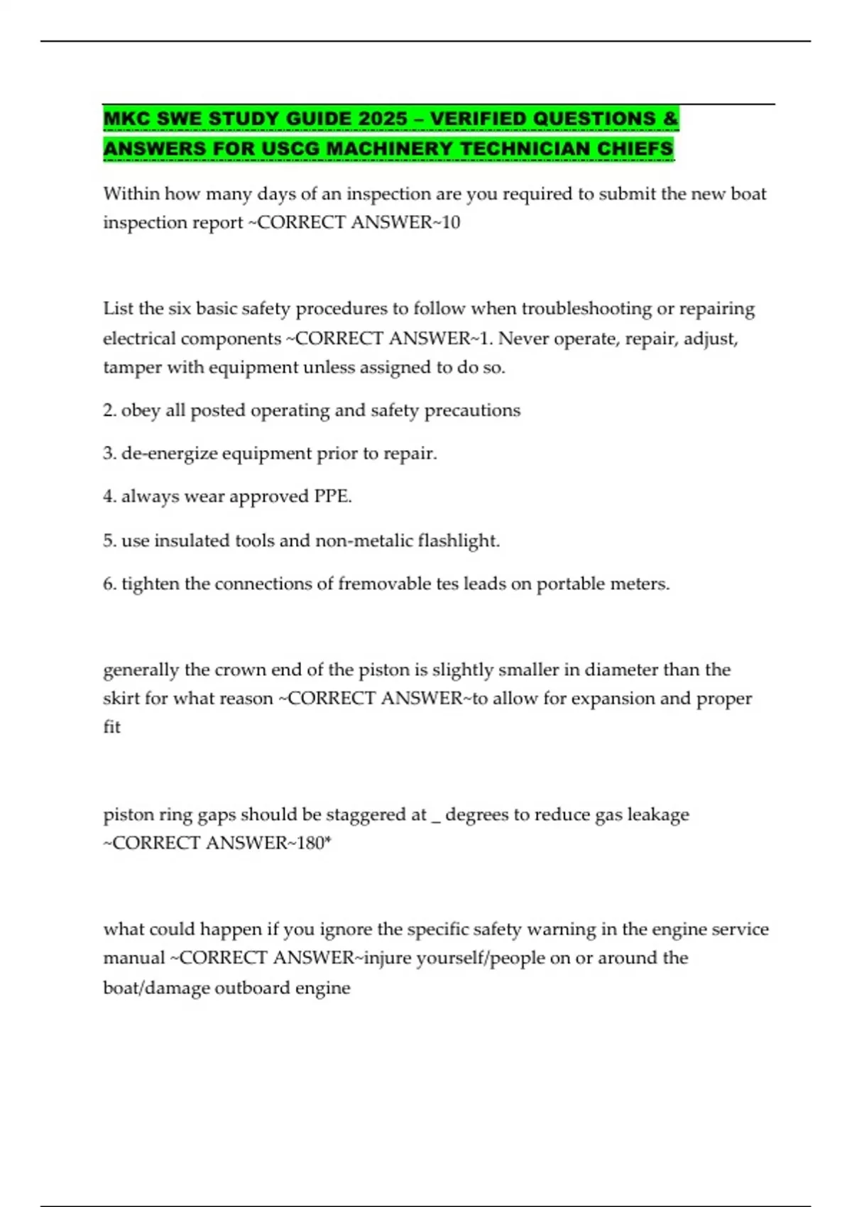 ANSWERS FOR USCG MACHINERY TECHNICIAN CHIEFS