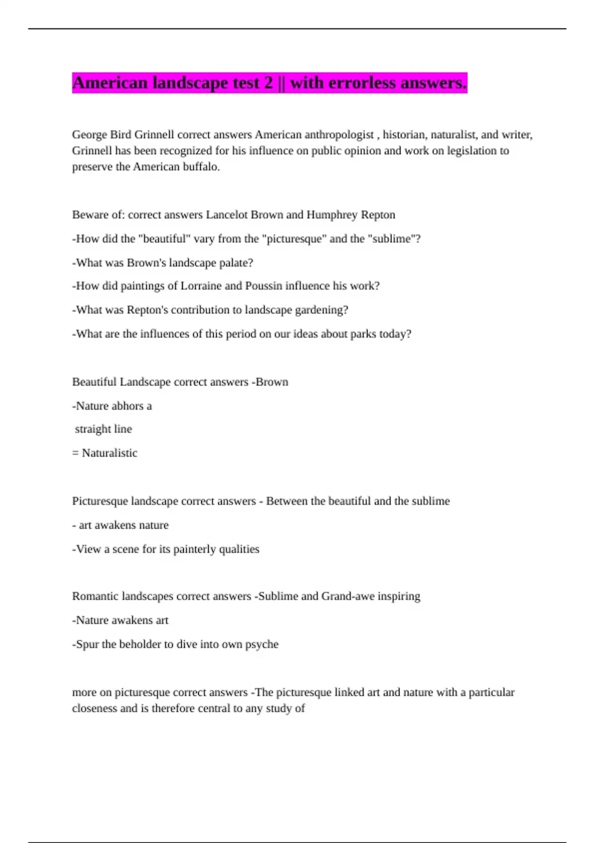 Picturesque landscape correct answers - Between the beautiful and the sublime