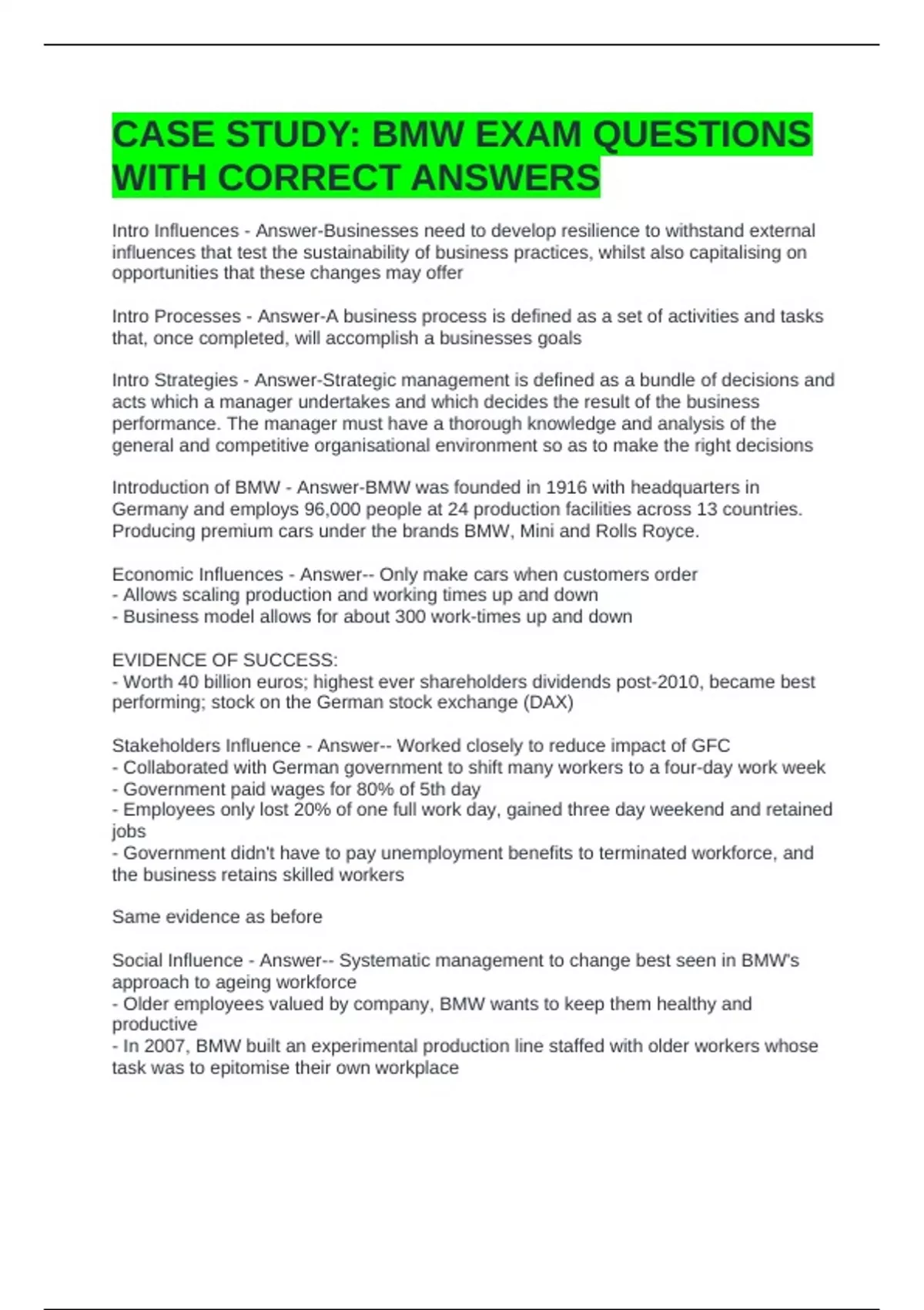 CASE STUDY: BMW EXAM QUESTIONS