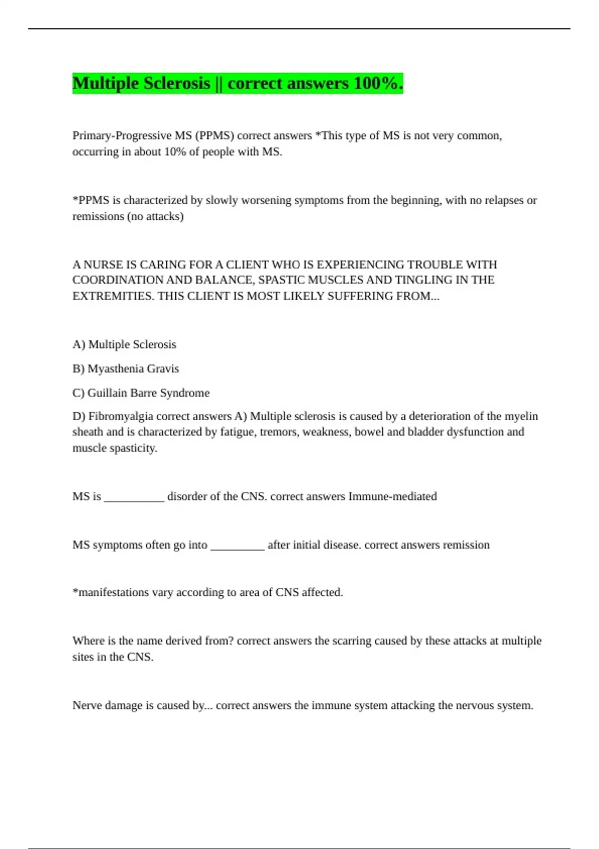 Primary-Progressive MS (PPMS) correct answers *This type of MS is not very common,