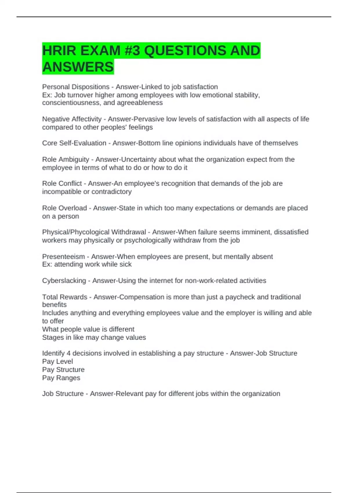 HRIR EXAM #3 QUESTIONS AND