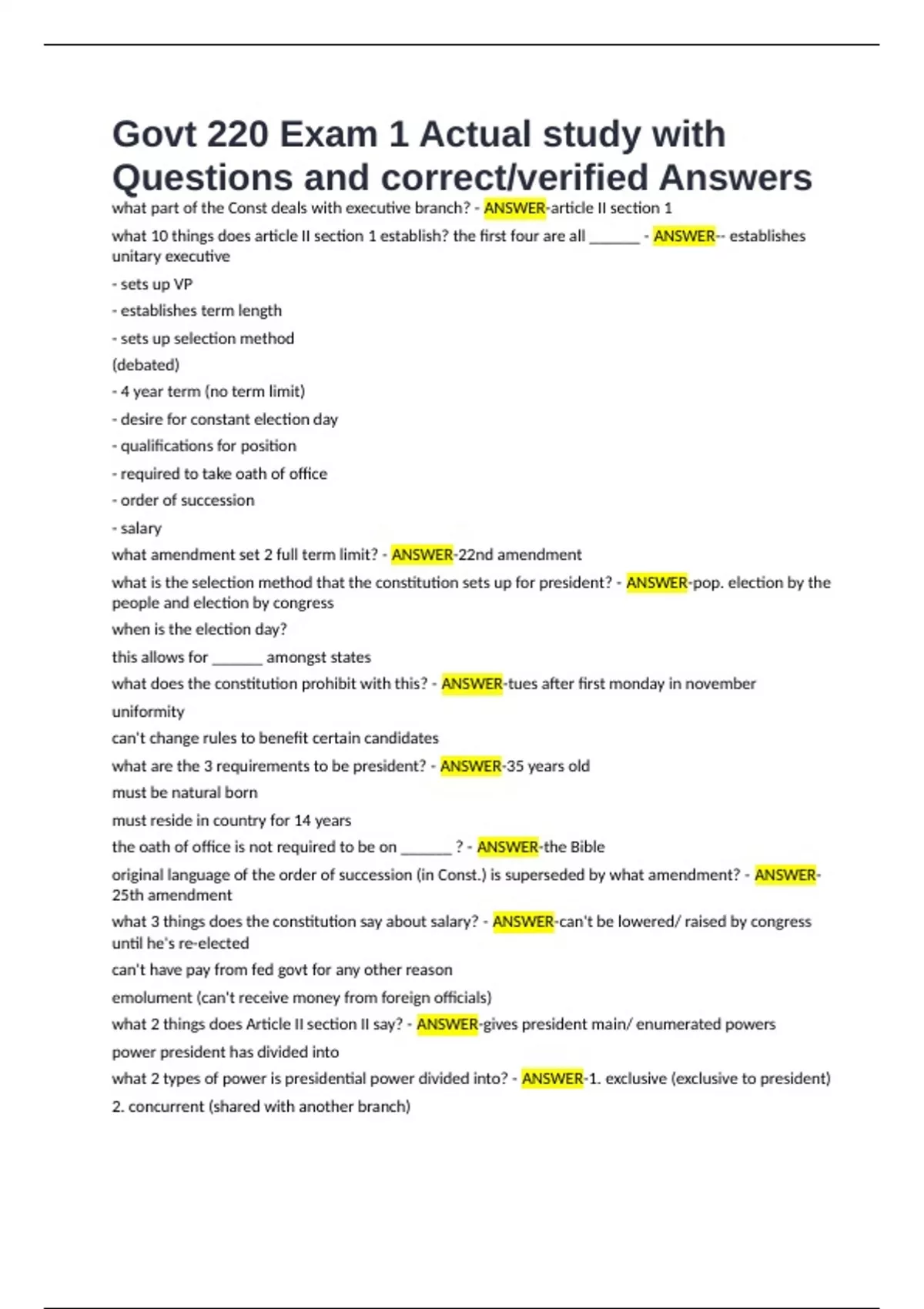 what 10 things does article II section 1 establish? the first four are all ______ - ANSWER-- establishes