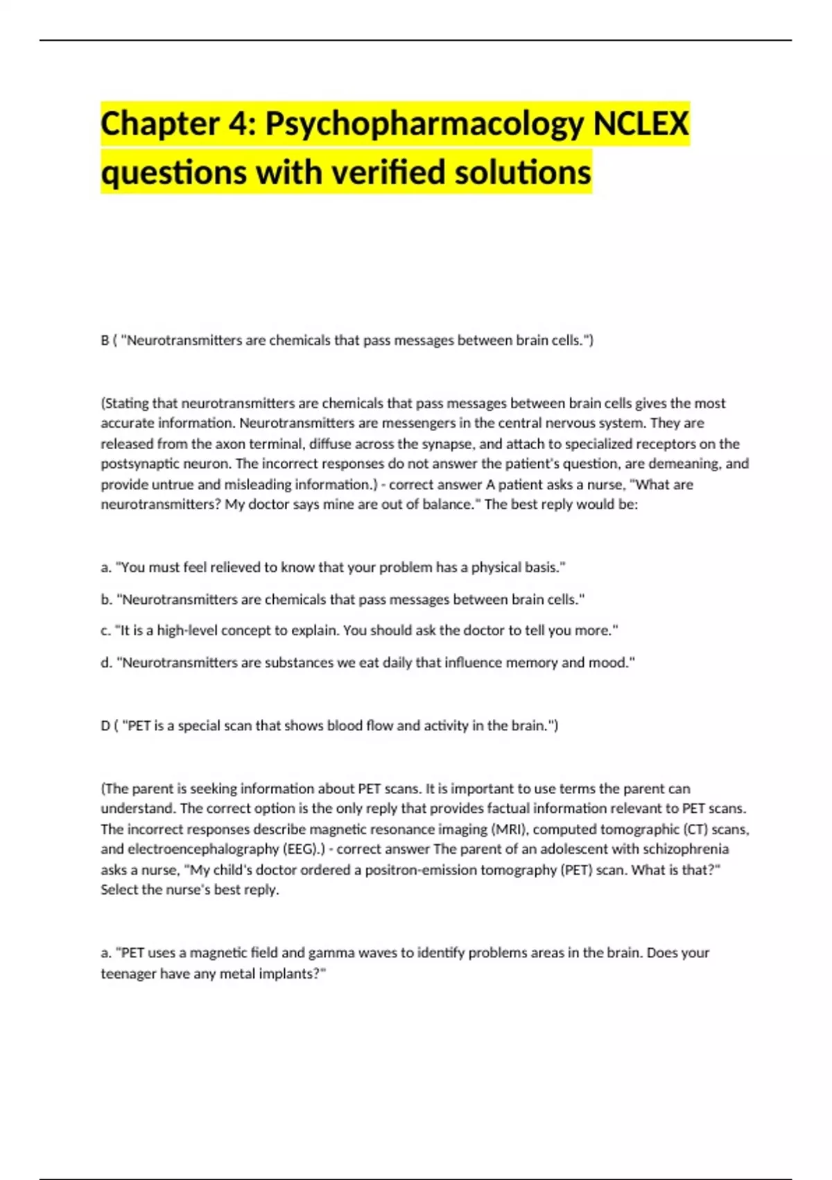 a. "PET uses a magnetic field and gamma waves to identify problems areas in the brain. Does your