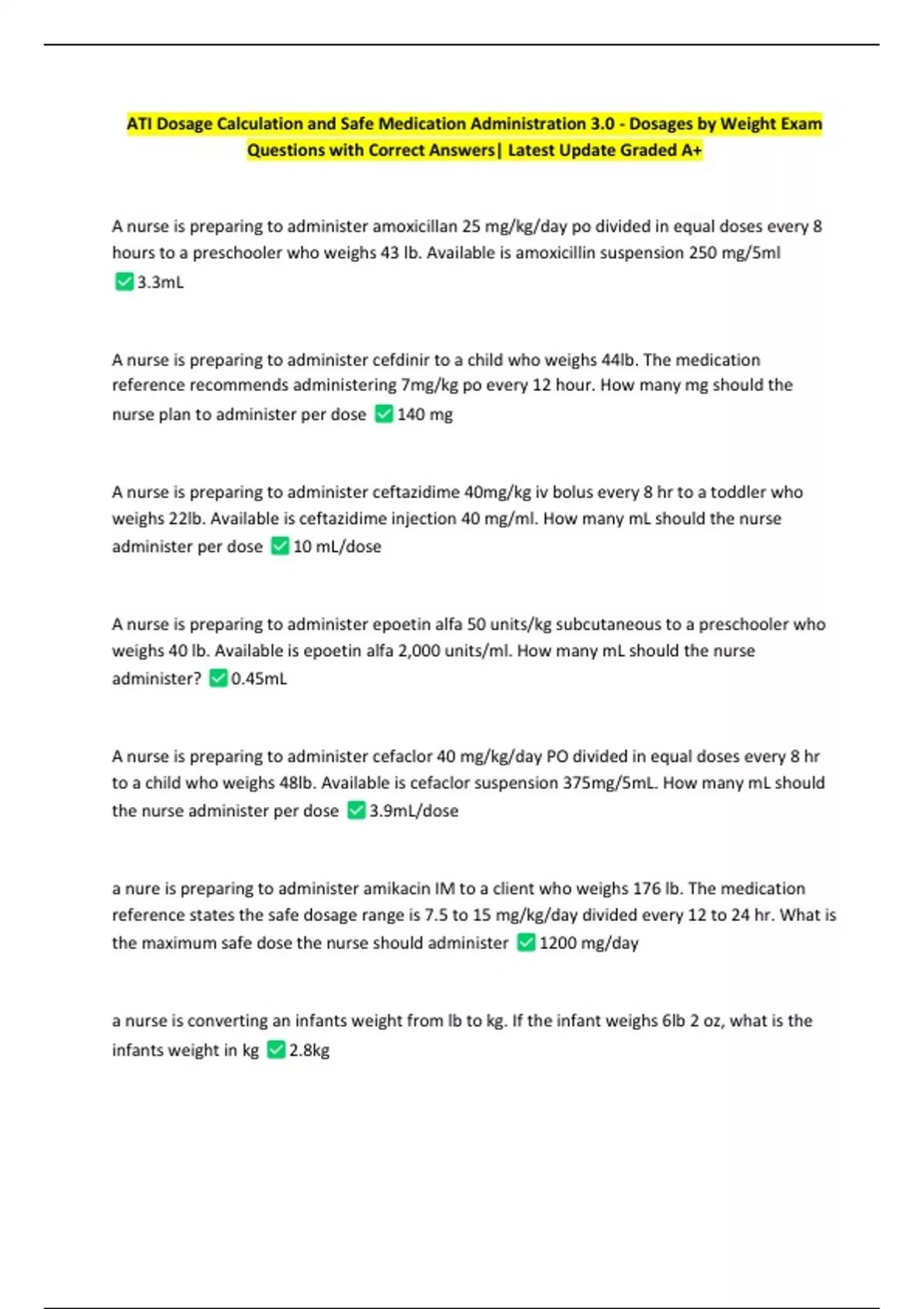 Questions with Correct Answers| Latest Update Graded A+