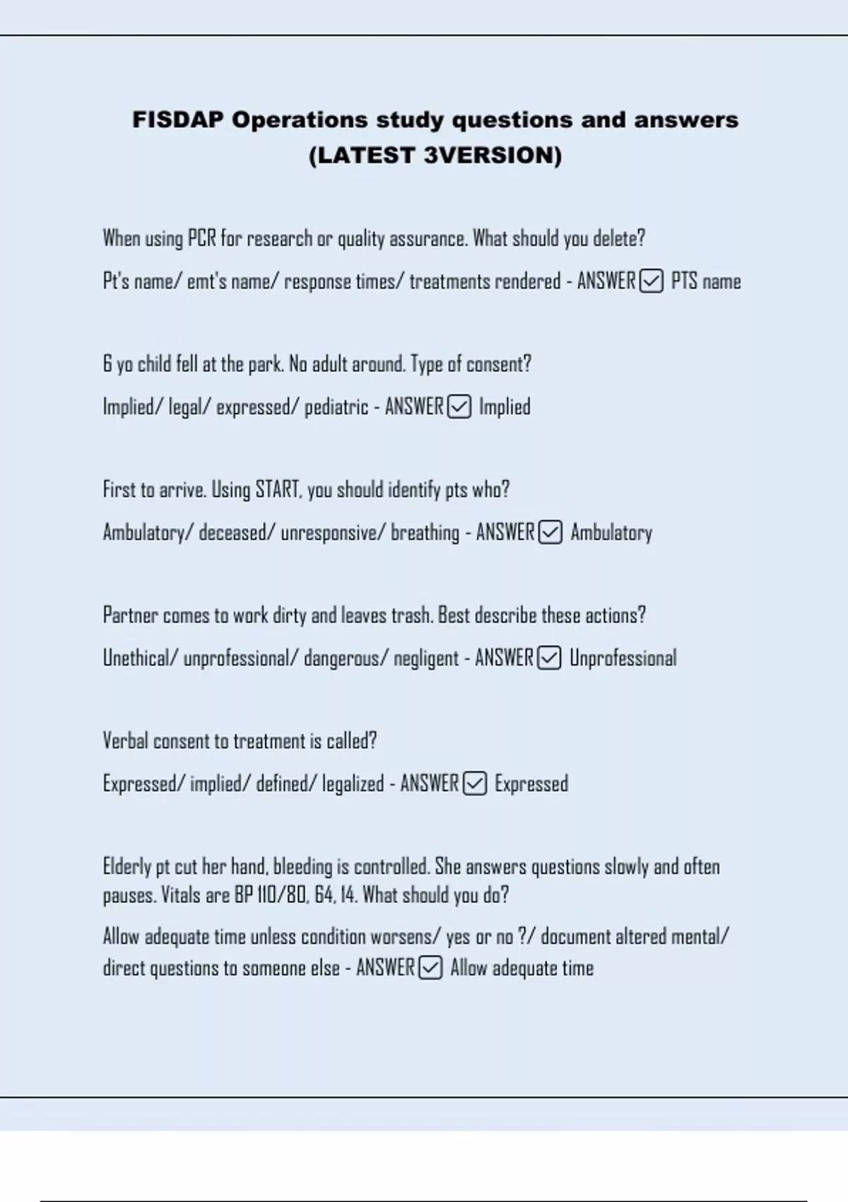 FISDAP Operations Study Questions and Answers – Latest Version 3 Exam Prep Material