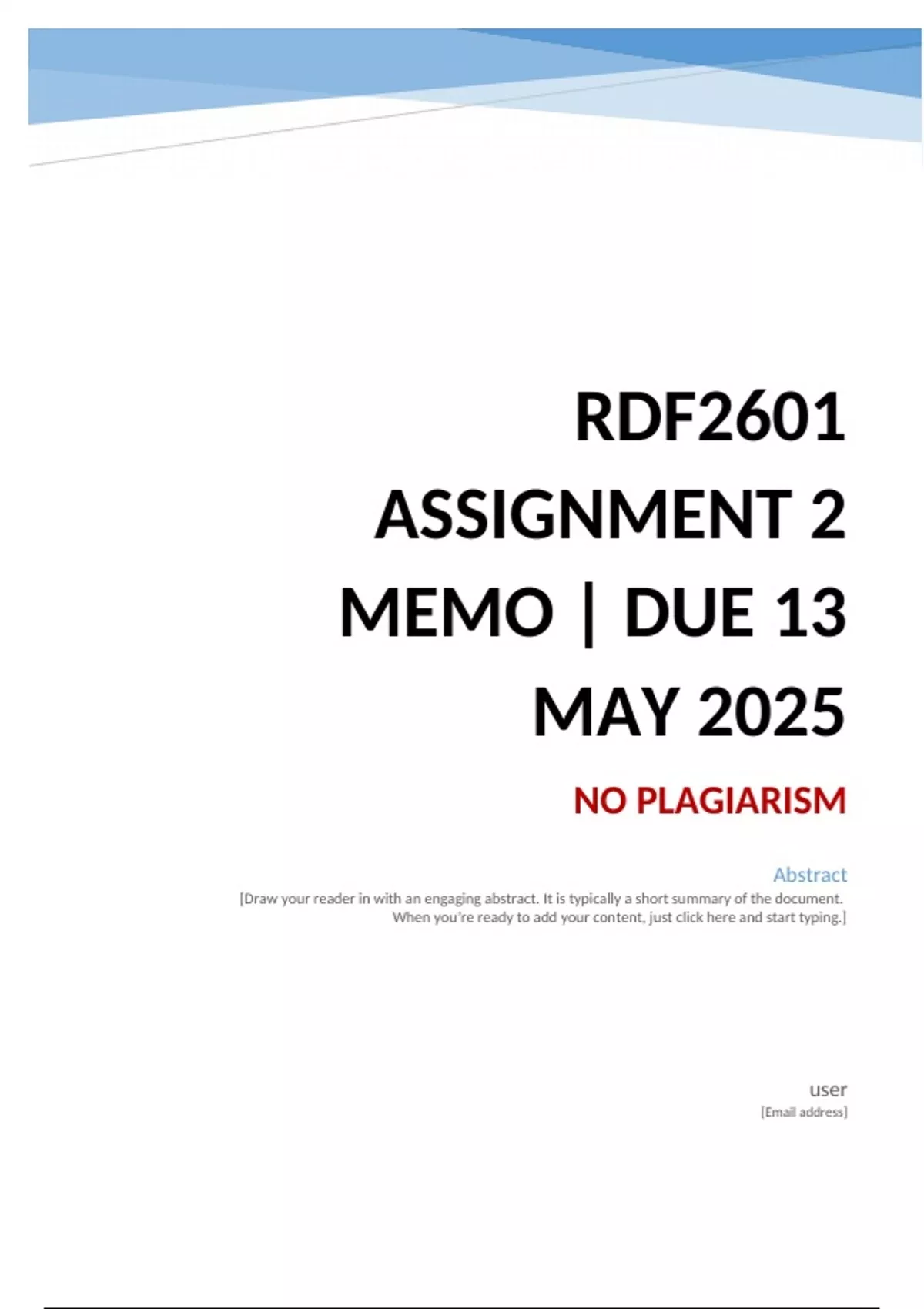 RDF2601 Assignment 2 Memo | Due 13 May 2025. All questions fully