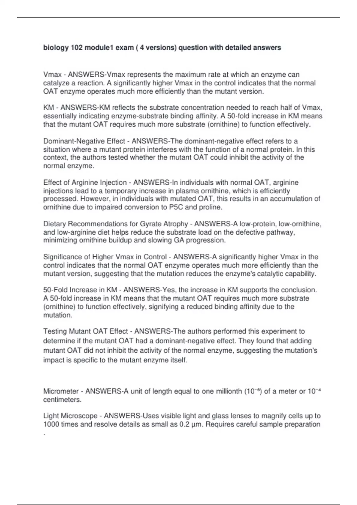 Significance of Higher Vmax in Control - ANSWERS-A significantly higher Vmax in the