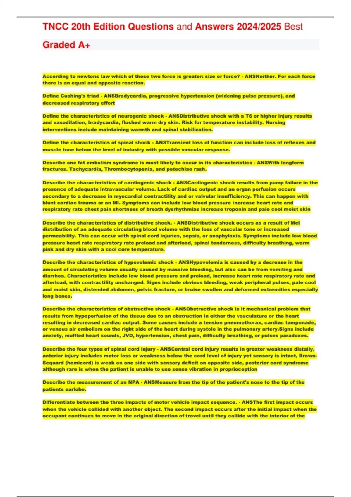 TNCC 20th Edition Questions and Answers 2024/2025 Best
