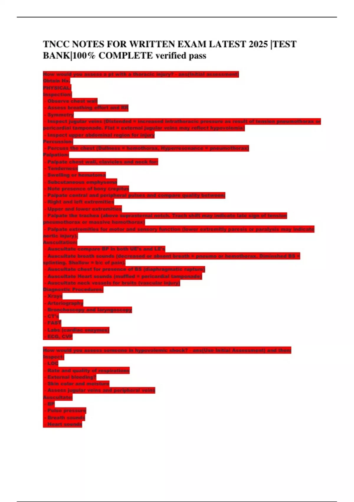 , TNCC NOTES FOR WRITTEN EXAM LATEST 2025 |TEST