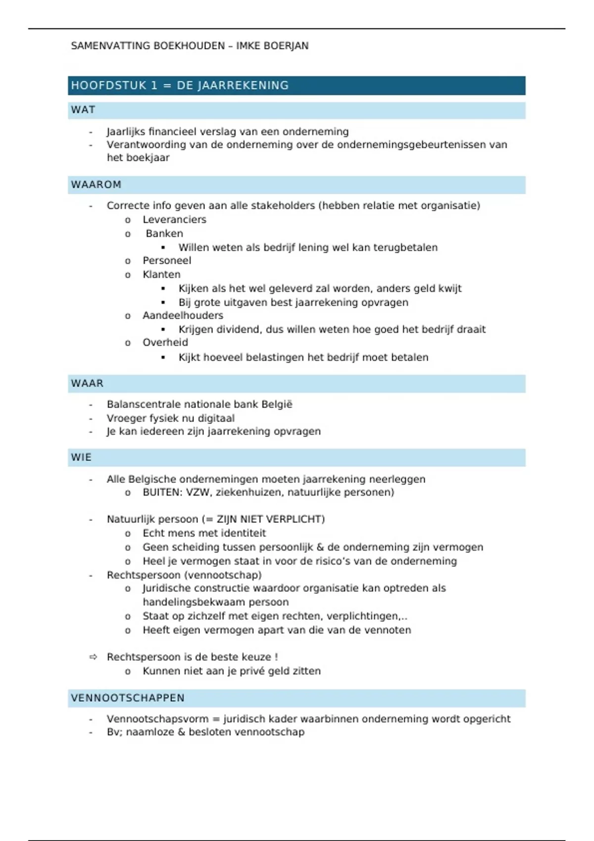, SAMENVATTING BOEKHOUDEN – IMKE BOERJAN