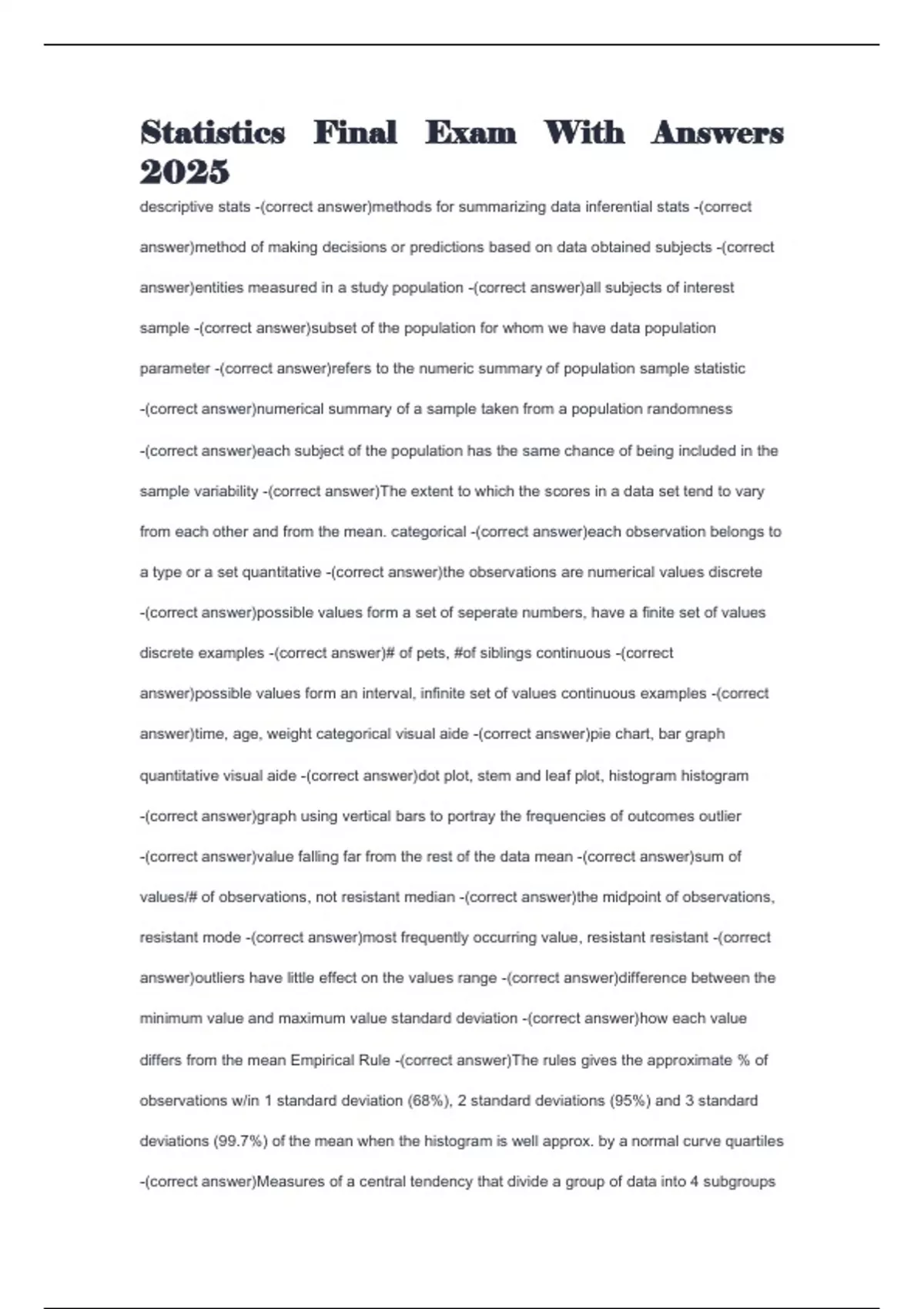 -(correct answer)Measures of a central tendency that divide a group of data into 4 subgroups