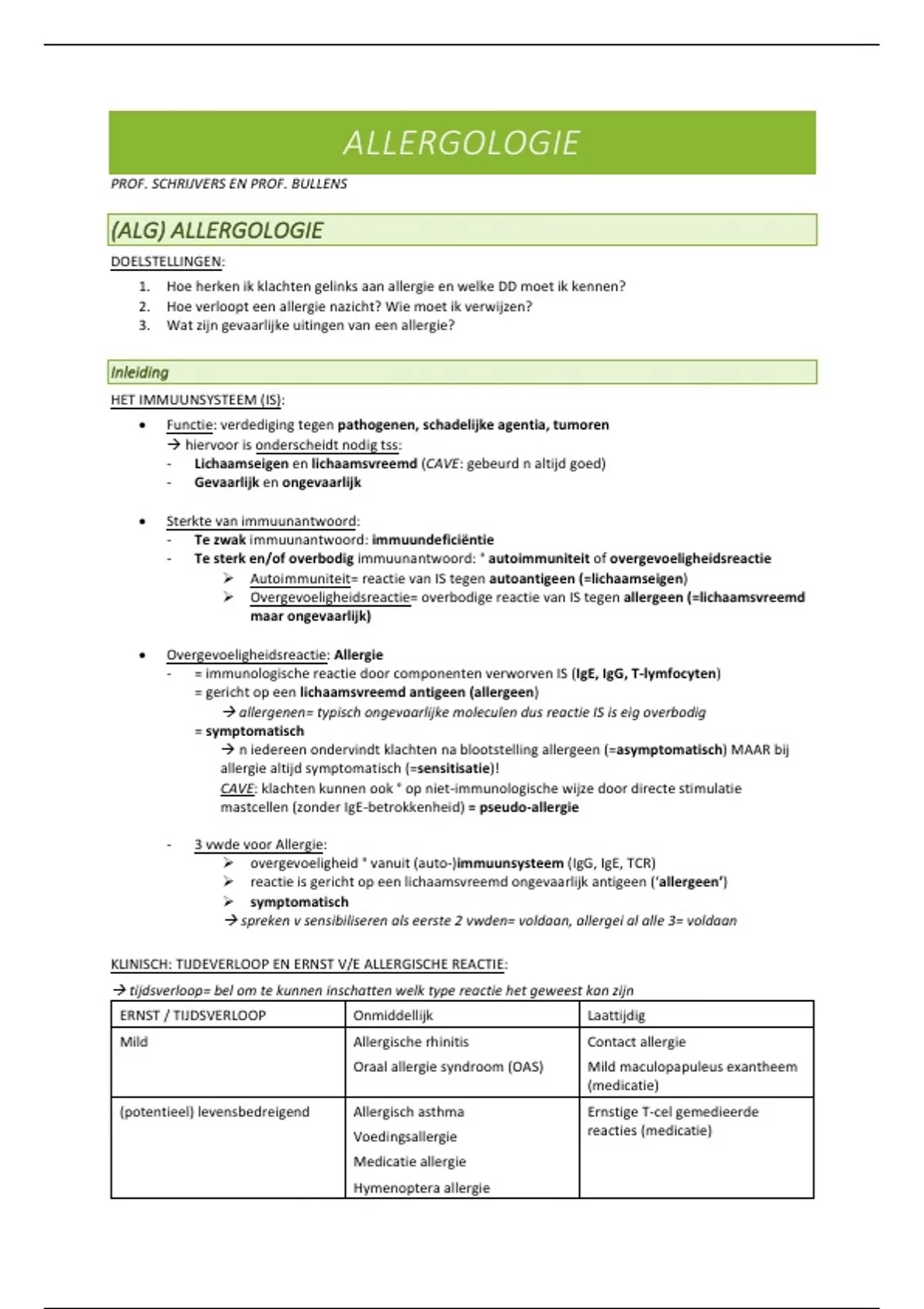 KLINISCH: TIJDEVERLOOP EN ERNST V/E ALLERGISCHE REACTIE: