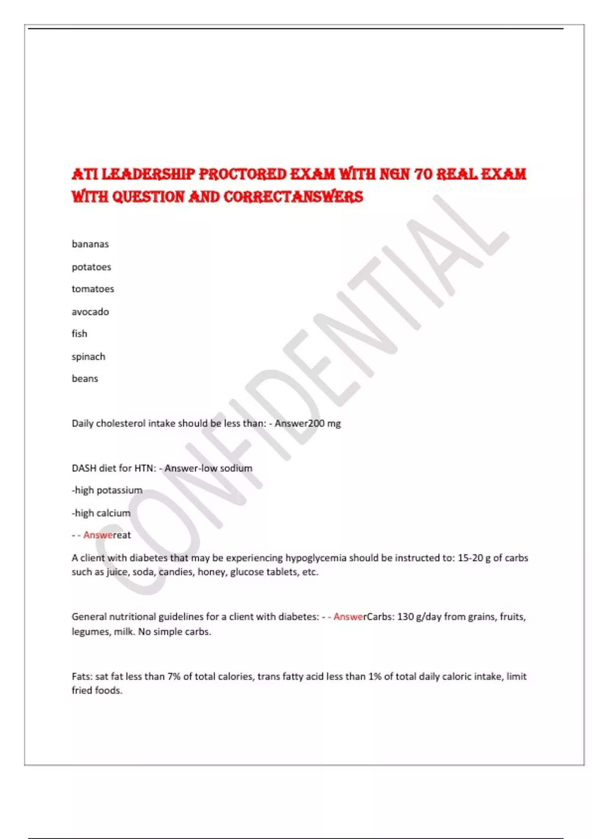 DASH diet for HTN: - Answer-low sodium