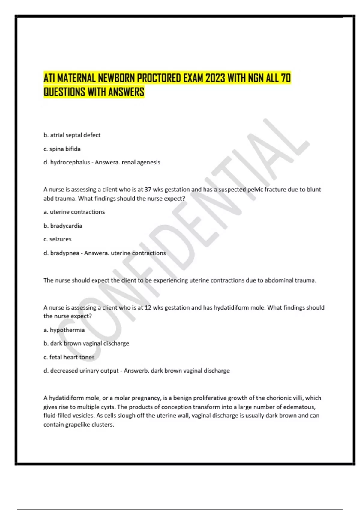 d. decreased urinary output - Answerb. dark brown vaginal discharge