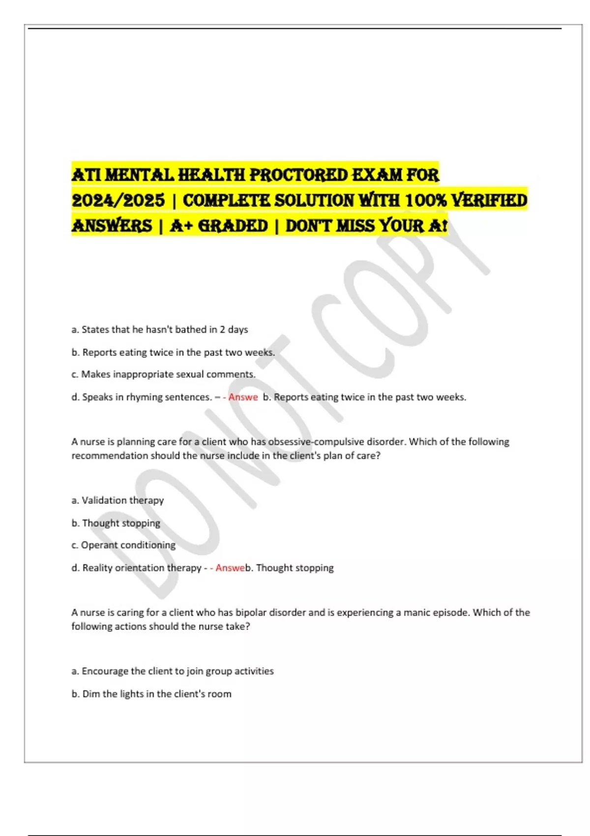 d. Reality orientation therapy - - Answeb. Thought stopping
