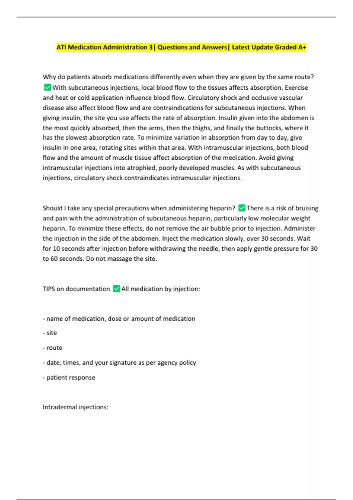 ATI Medication Administration 3| Questions and Answers| Latest Update Graded A+