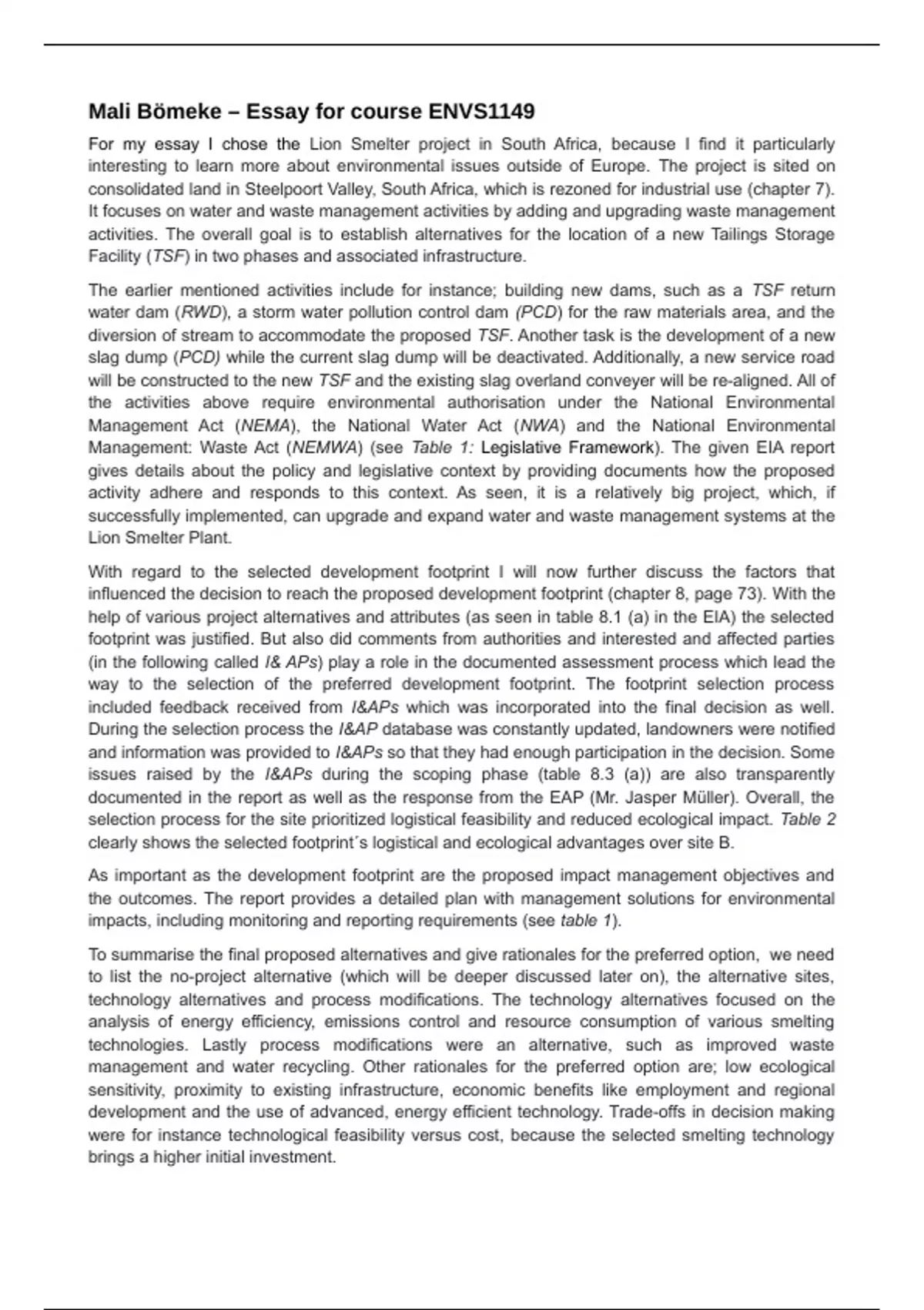 Management: Waste Act (NEMWA) (see Table 1: Legislative Framework). The given EIA report