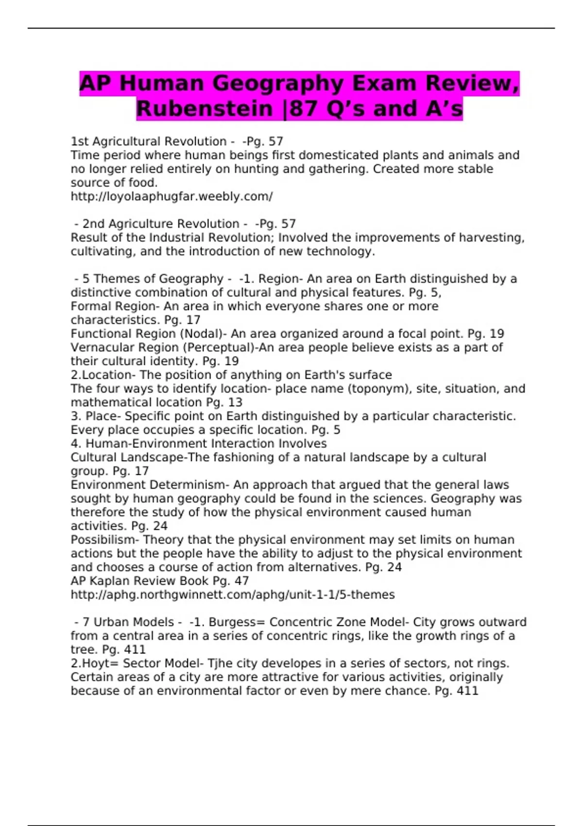 AP Human Geography Exam Review, Rubenstein |87 Q’s and A’s