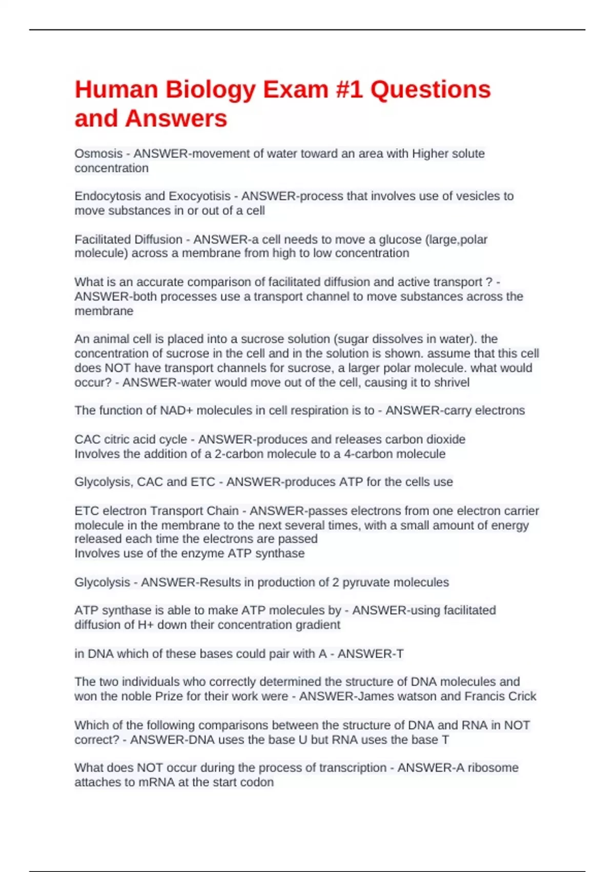 Human Biology Exam #1 Questions