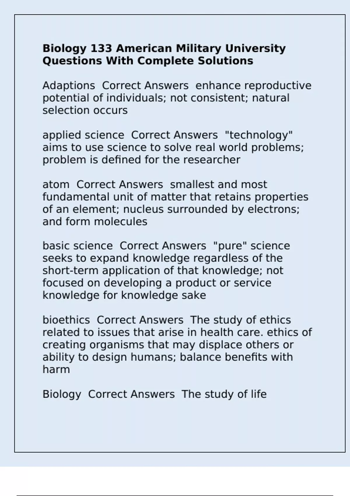 Biology Correct Answers The study of life