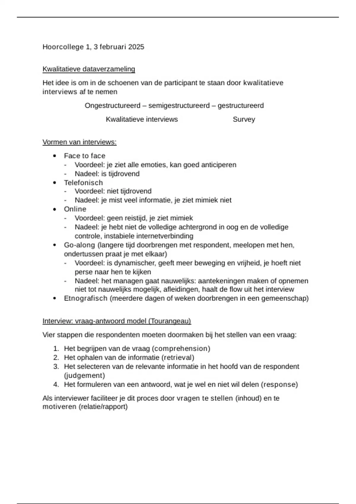 Het idee is om in de schoenen van de participant te staan door kwalitatieve
