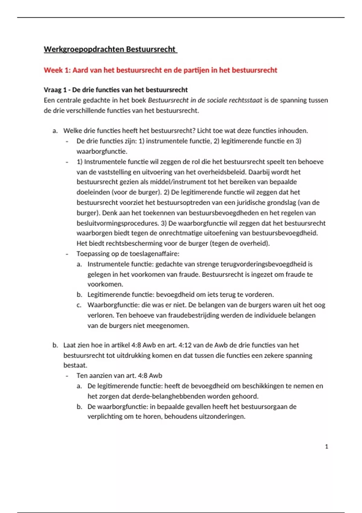 Samenvatting Werkgroepopdrachten bestuursrecht
